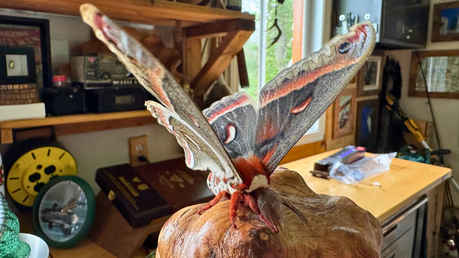 En installant un piège à papillons nocturnes – un grand drap blanc éclairé par une lampe – l'enseignant a eu la surprise d’attirer un papillon de nuit saturnie cécropia, le plus grand papillon d’Amérique du Nord.