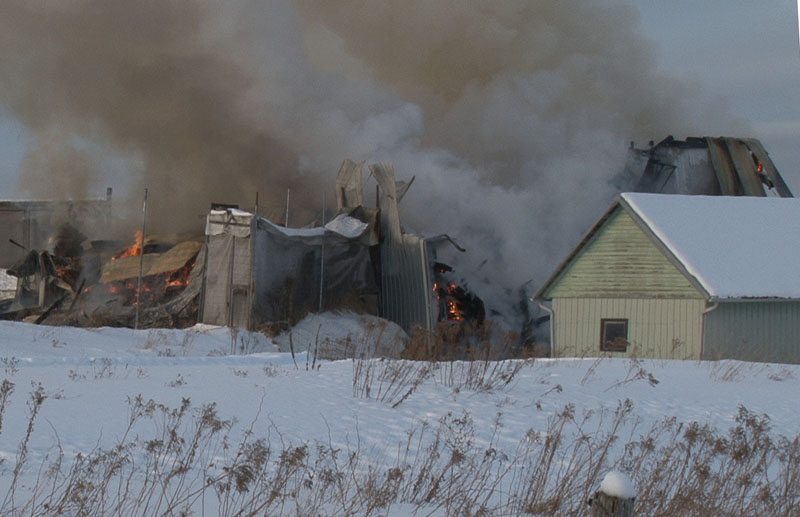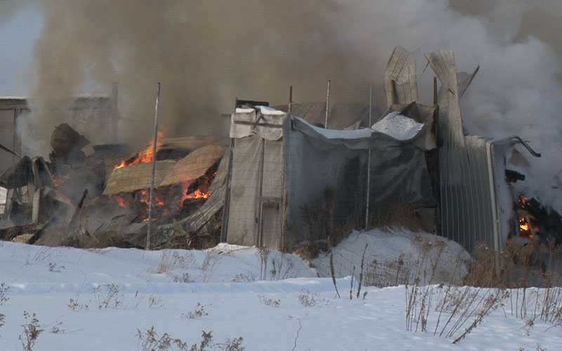 Un incendie a ravagé un bâtiment de ferme loué par l'entreprise Buck Expert, dans le rang 14, à Saint-Benjamin.
