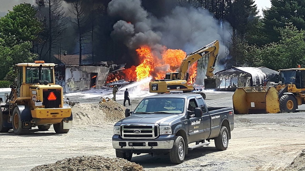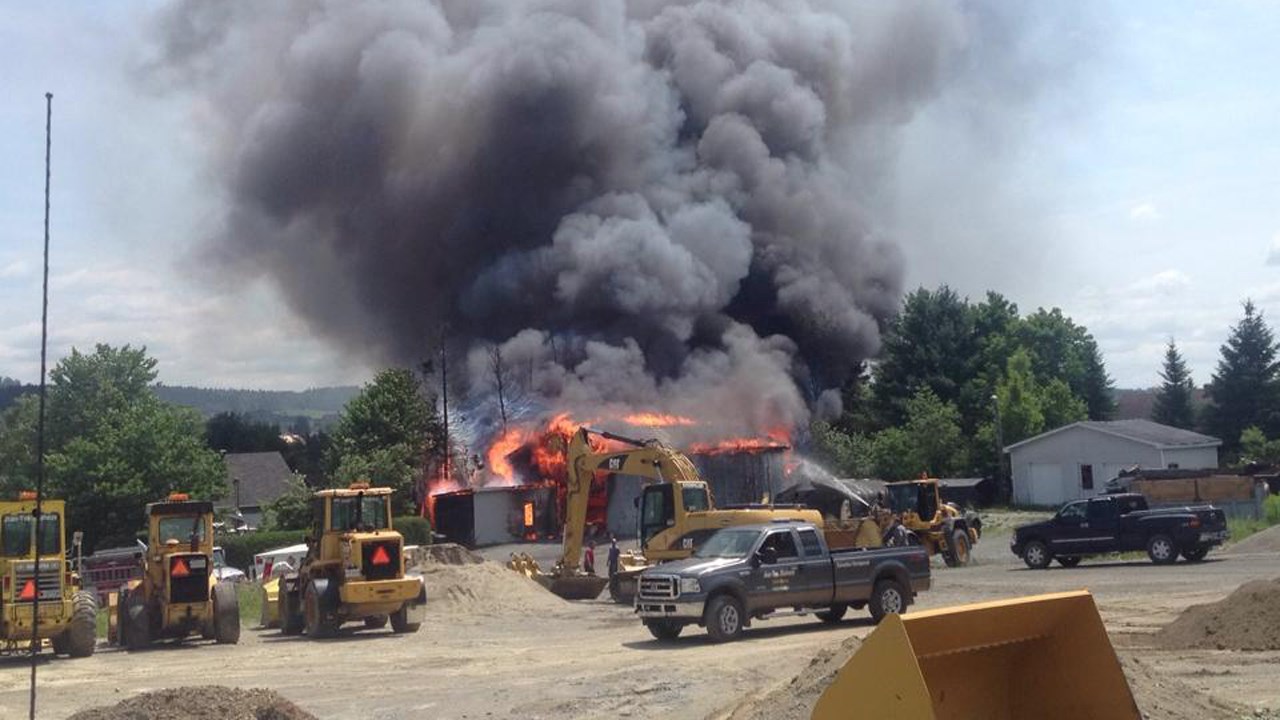 Un incendie a détruit le garage Jean-Yves Maheux cet après-midi sur la 1re Rue Ouest à Saint-Martin.