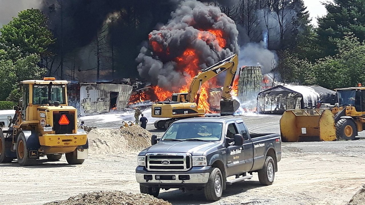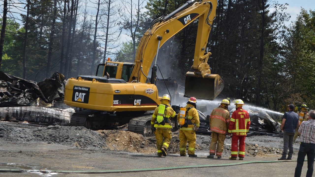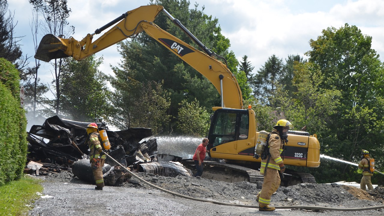 Les pompiers des municipalités voisines ont été appelés en renfort lors de l'intervention. Une pelle mécanique était également sur place pour aider les combattants du feu.
