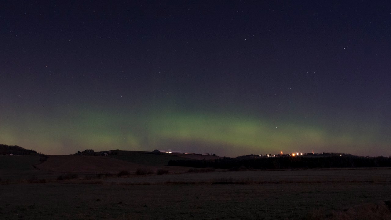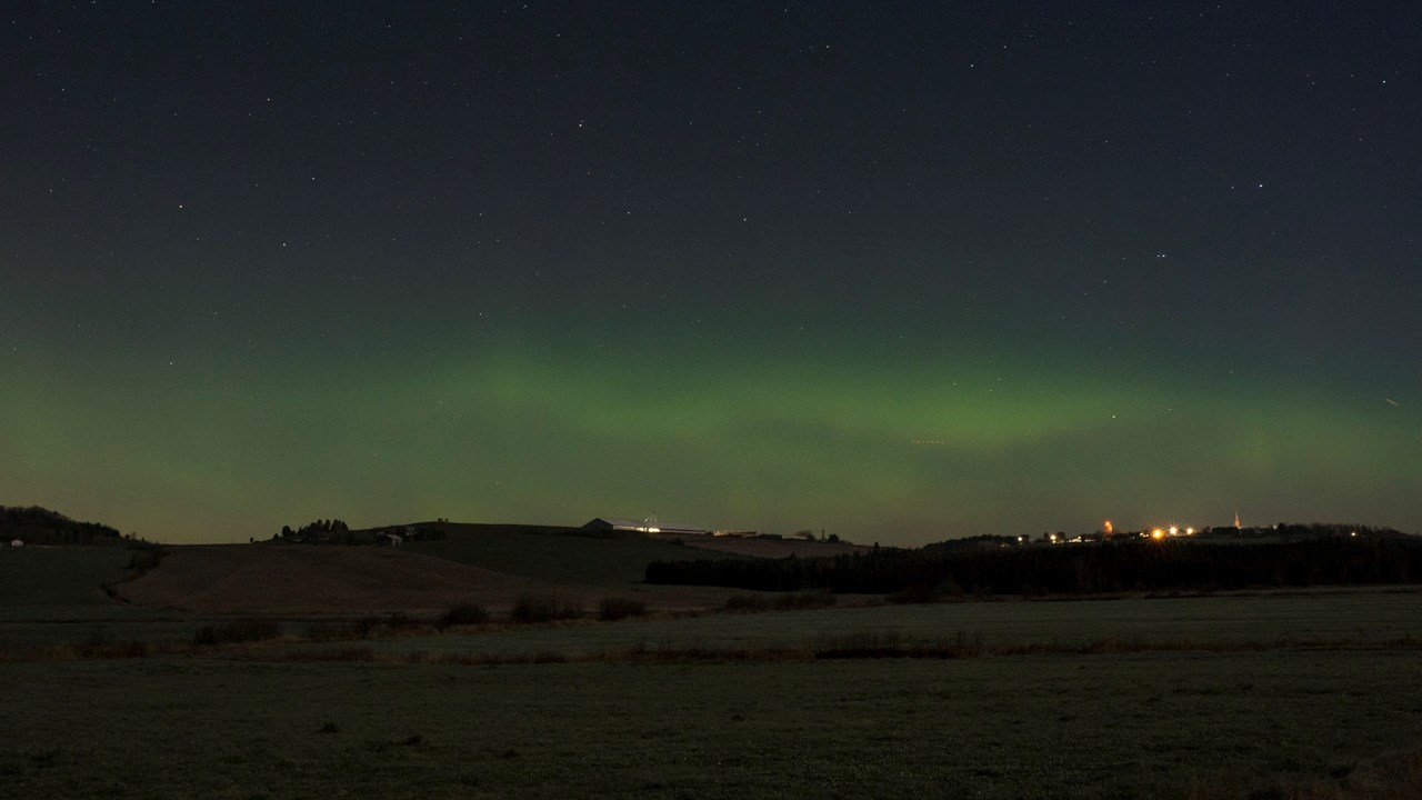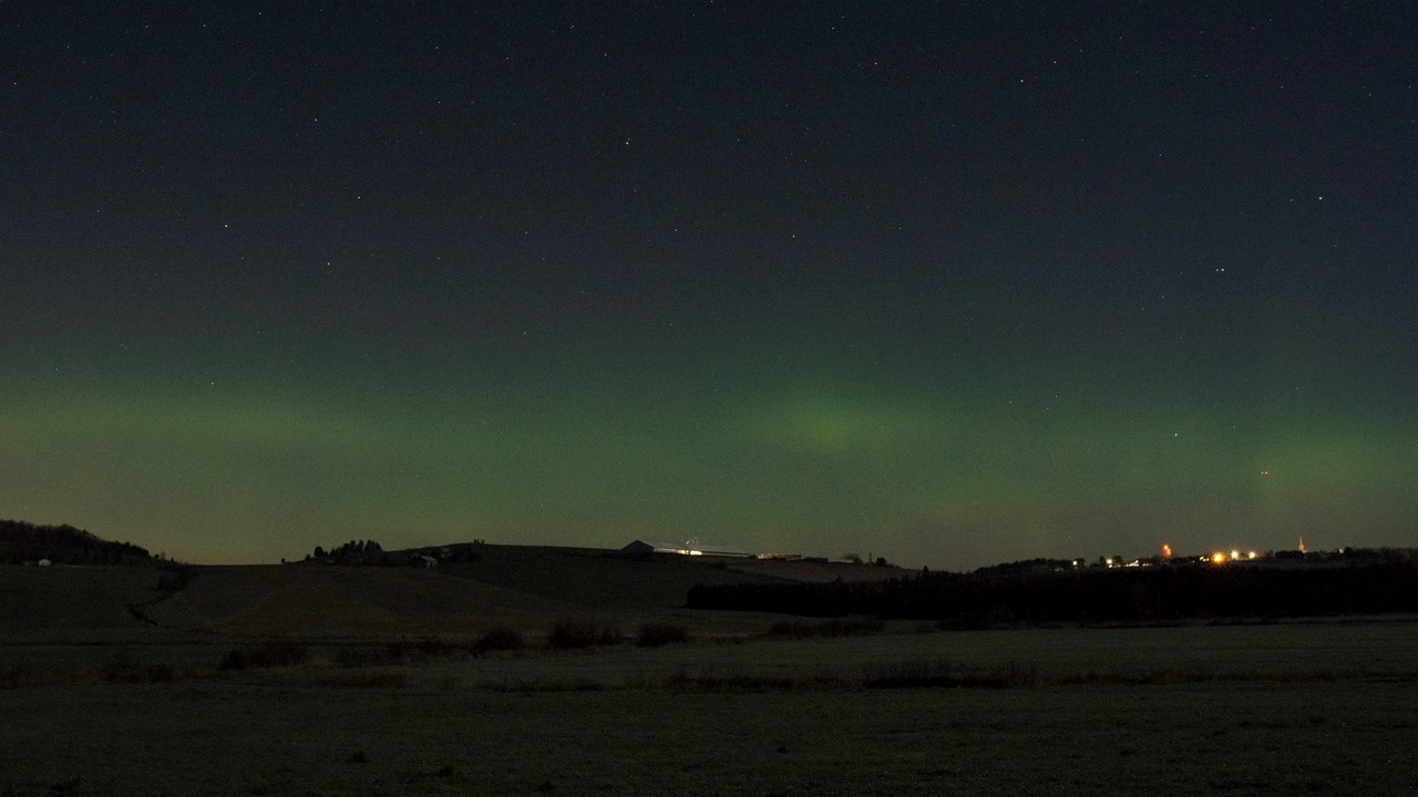 Dans la nuit du mardi 7 au mercredi 8 novembre, les observateurs attentifs du ciel étoilé auront peut-être eu la chance d'apercevoir les lueurs vertes d'aurores boréales dans le ciel de la Beauce. Au-dessus de la municipalité de Saint-Odilon-de-Cranbourne, malgré l'intensité de la luminosité de la lune, elles étaient visibles à l'oeil nu aux alentours de 23h. D'une intensité jusqu'à 6 Kp, elles se sont rapidement estompées pour finir par devenir à peine perceptibles pendant encore près d'une heure avant de disparaître.