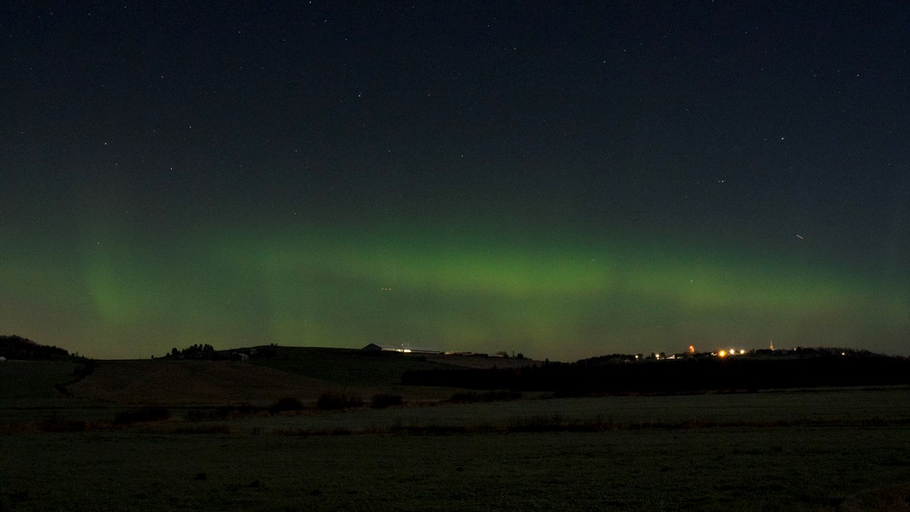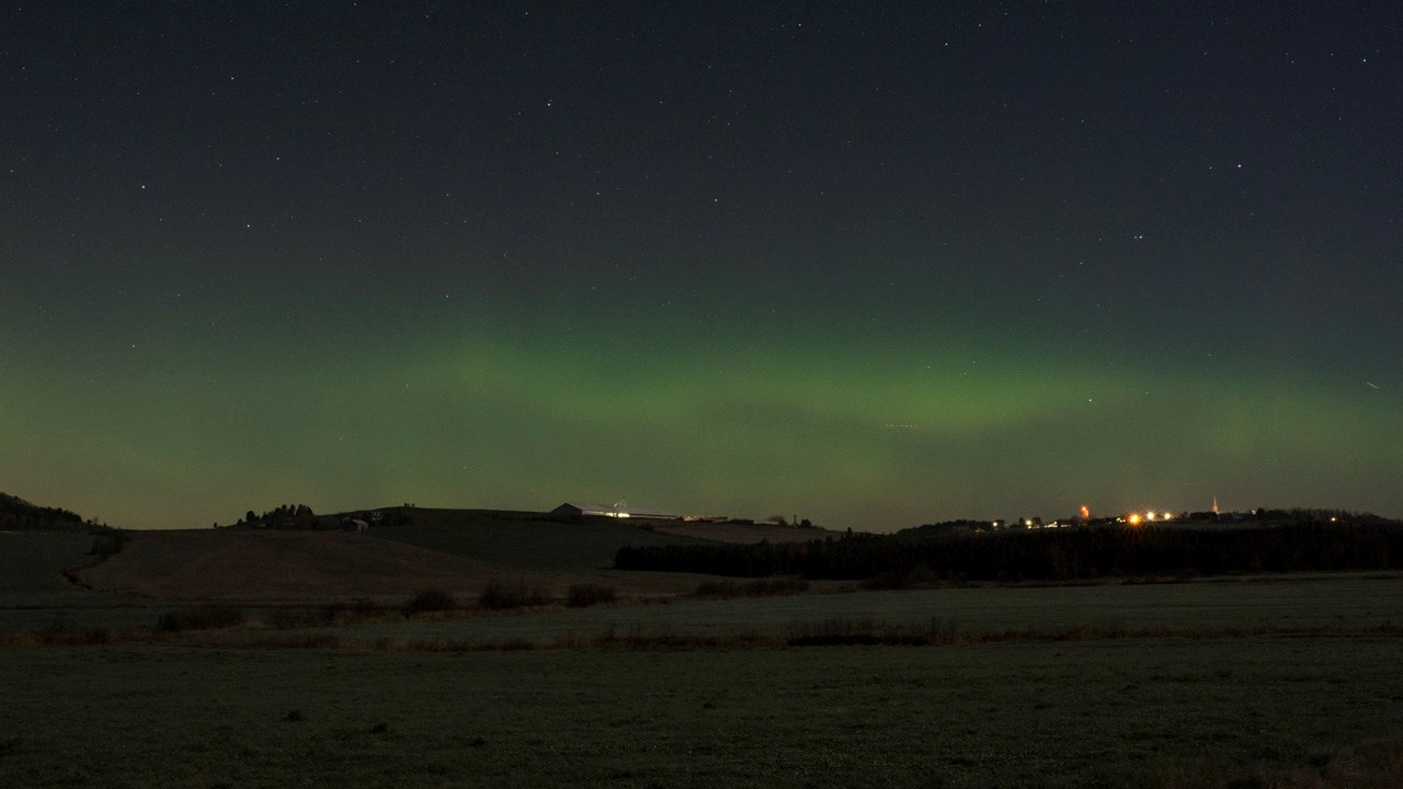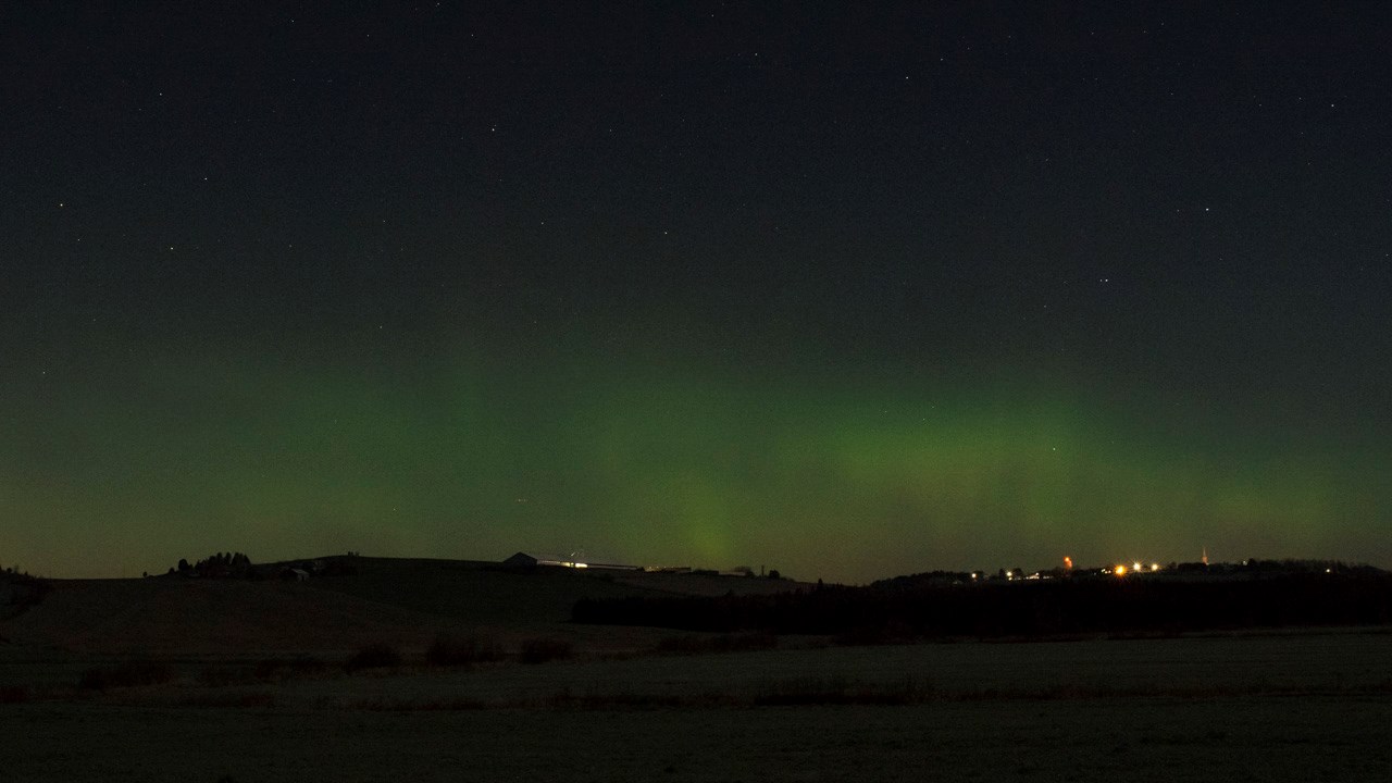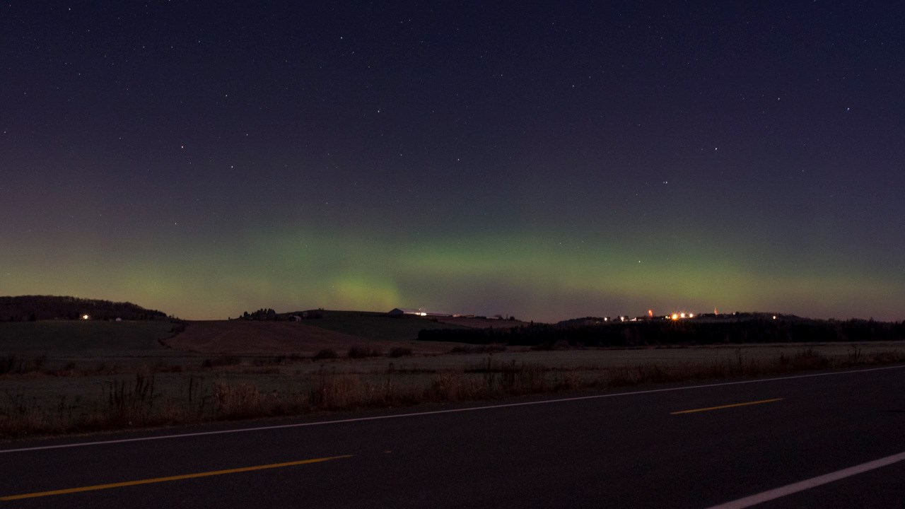 Dans la nuit du mardi 7 au mercredi 8 novembre, les observateurs attentifs du ciel étoilé auront peut-être eu la chance d'apercevoir les lueurs vertes d'aurores boréales dans le ciel de la Beauce. Au-dessus de la municipalité de Saint-Odilon-de-Cranbourne, malgré l'intensité de la luminosité de la lune, elles étaient visibles à l'oeil nu aux alentours de 23h. D'une intensité jusqu'à 6 Kp, elles se sont rapidement estompées pour finir par devenir à peine perceptibles pendant encore près d'une heure avant de disparaître.