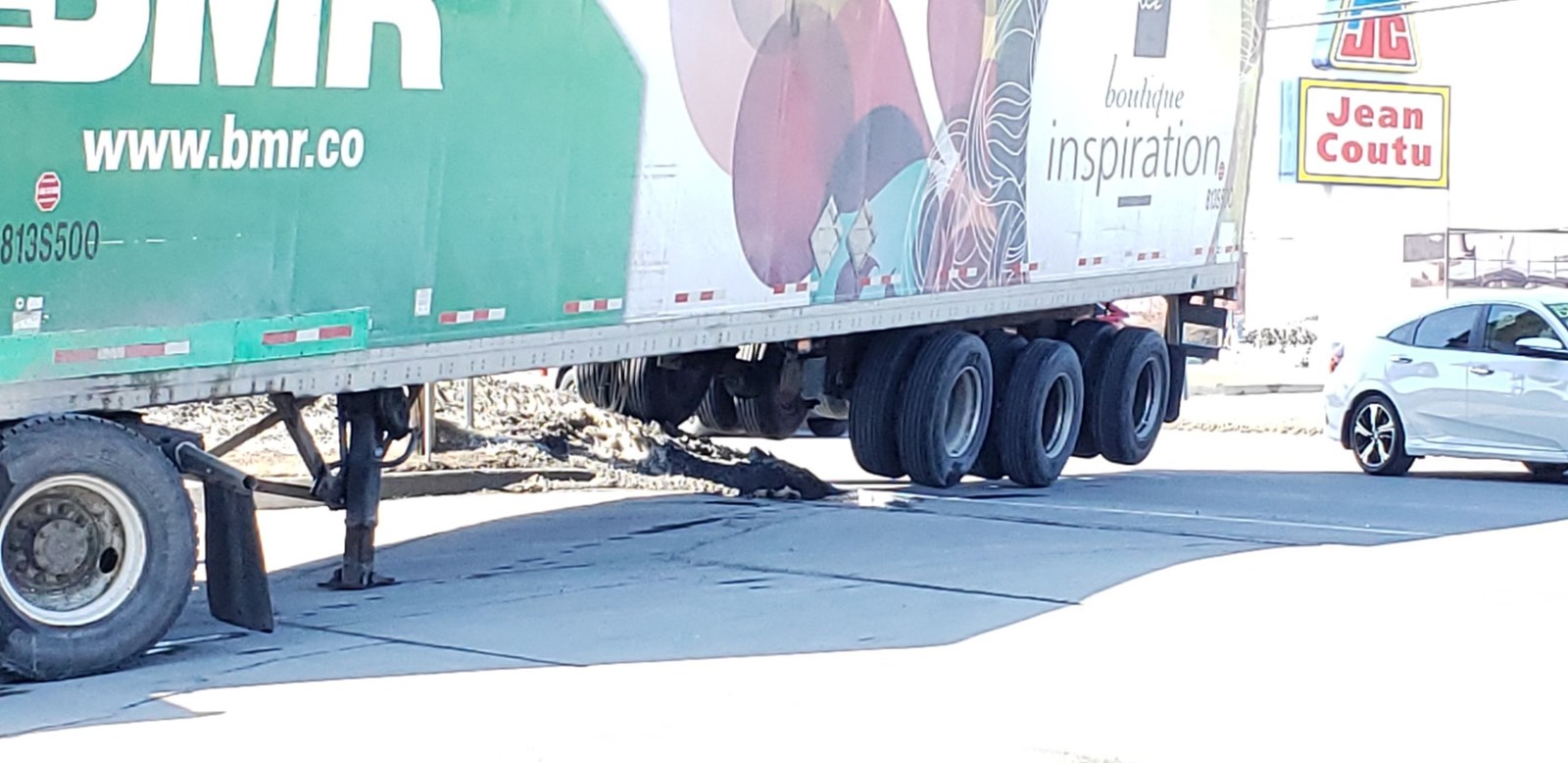 Vers 13 h 55, un camion de BMR a failli se renverser sur le boulevard Lacroix, à la hauteur du commerce de BMR.