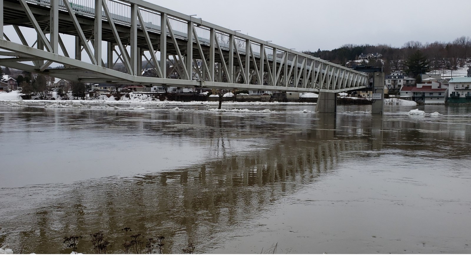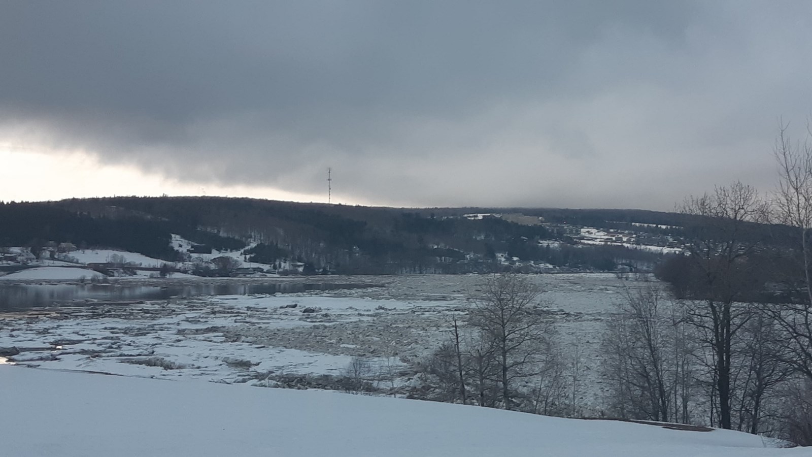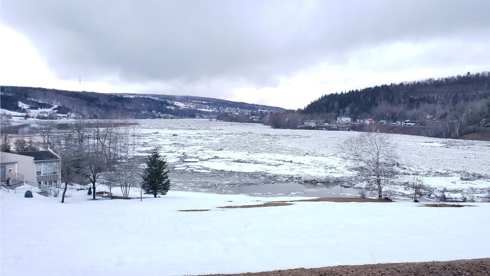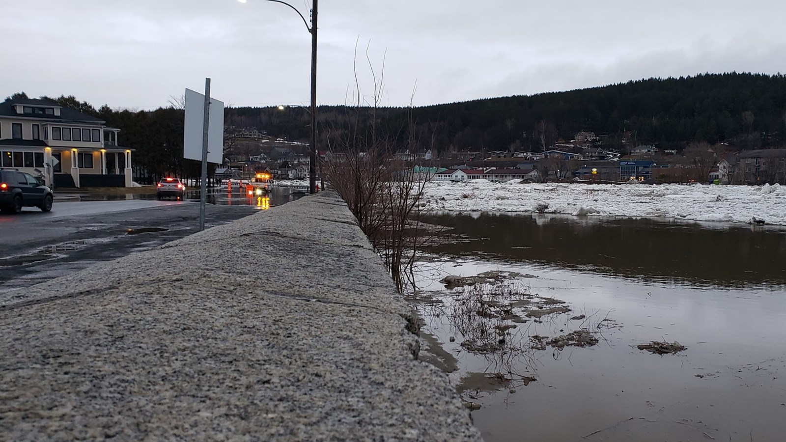 À 19h20, le niveau est toujours stable, mais un embâcle s'est formé du côté nord au centre-ville.