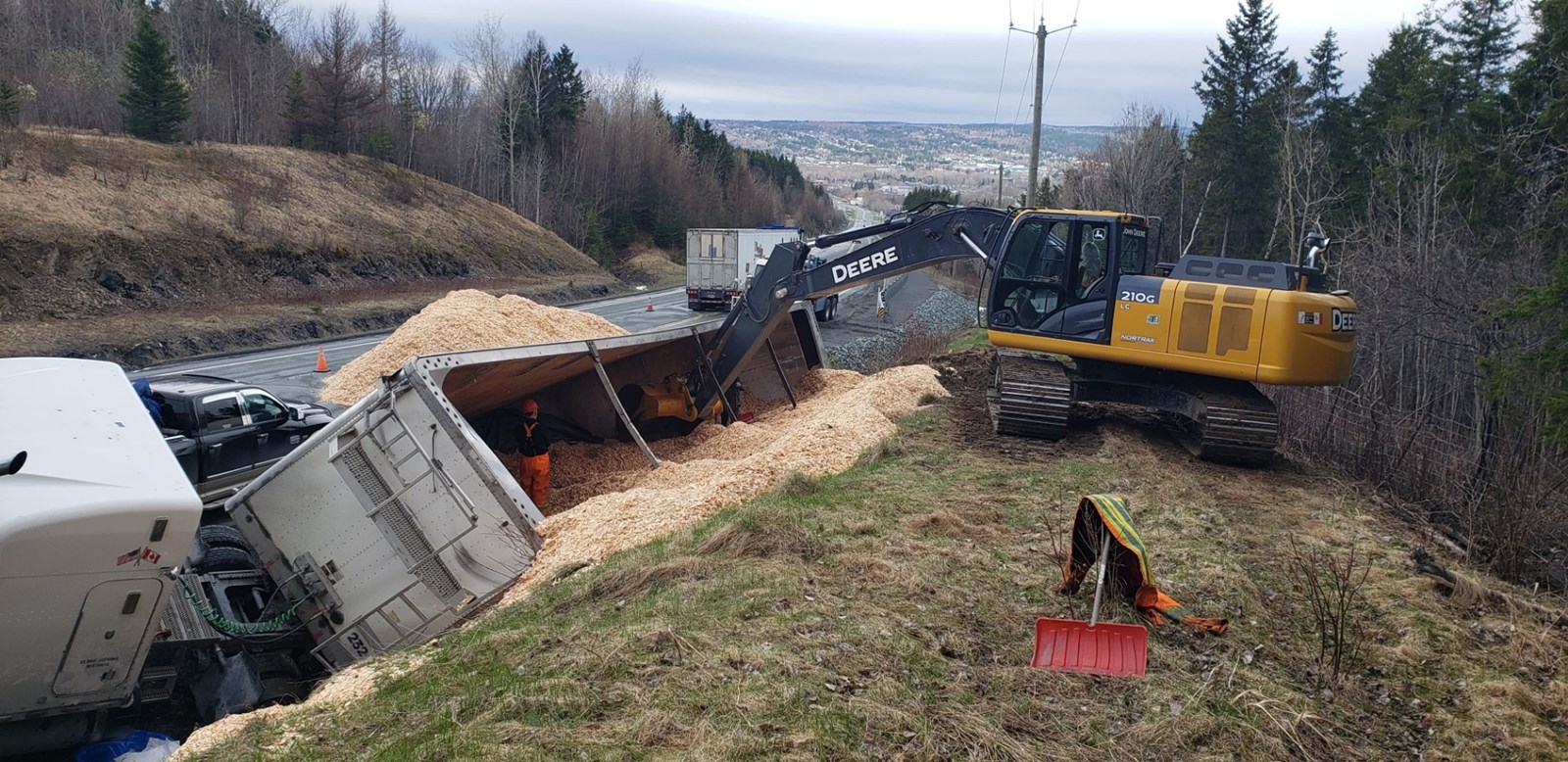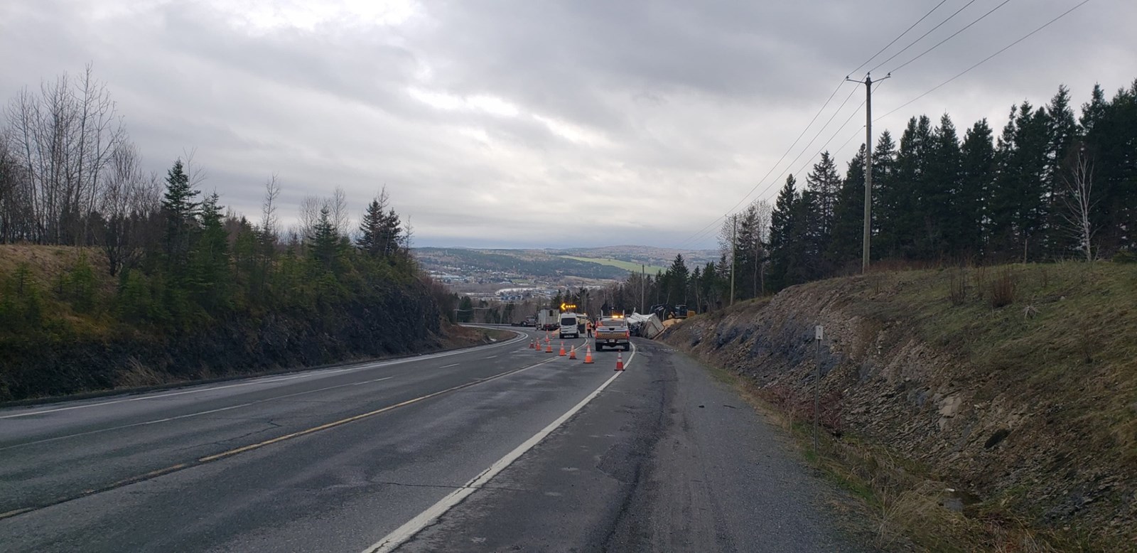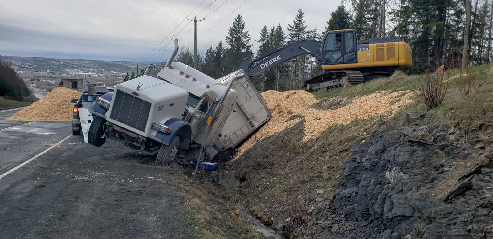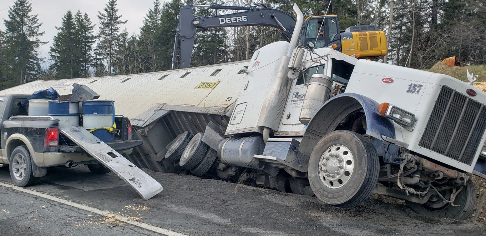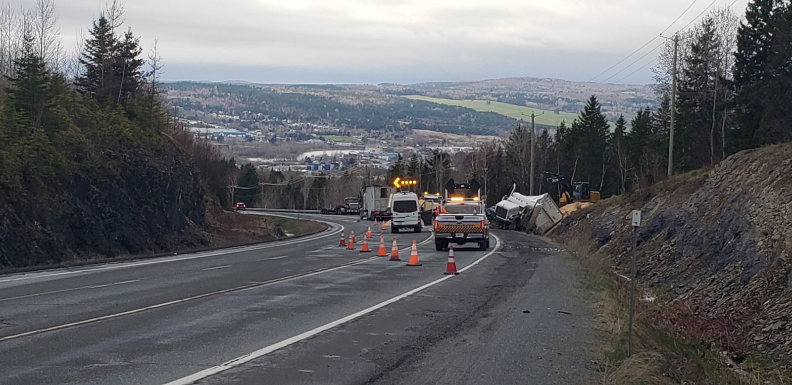 Un camion de 53 pieds s'est renversé tôt ce matin, ce qui a entraîné la fermeture de la route 204, entre le Walmart à Saint-Georges et la 117e Rue.