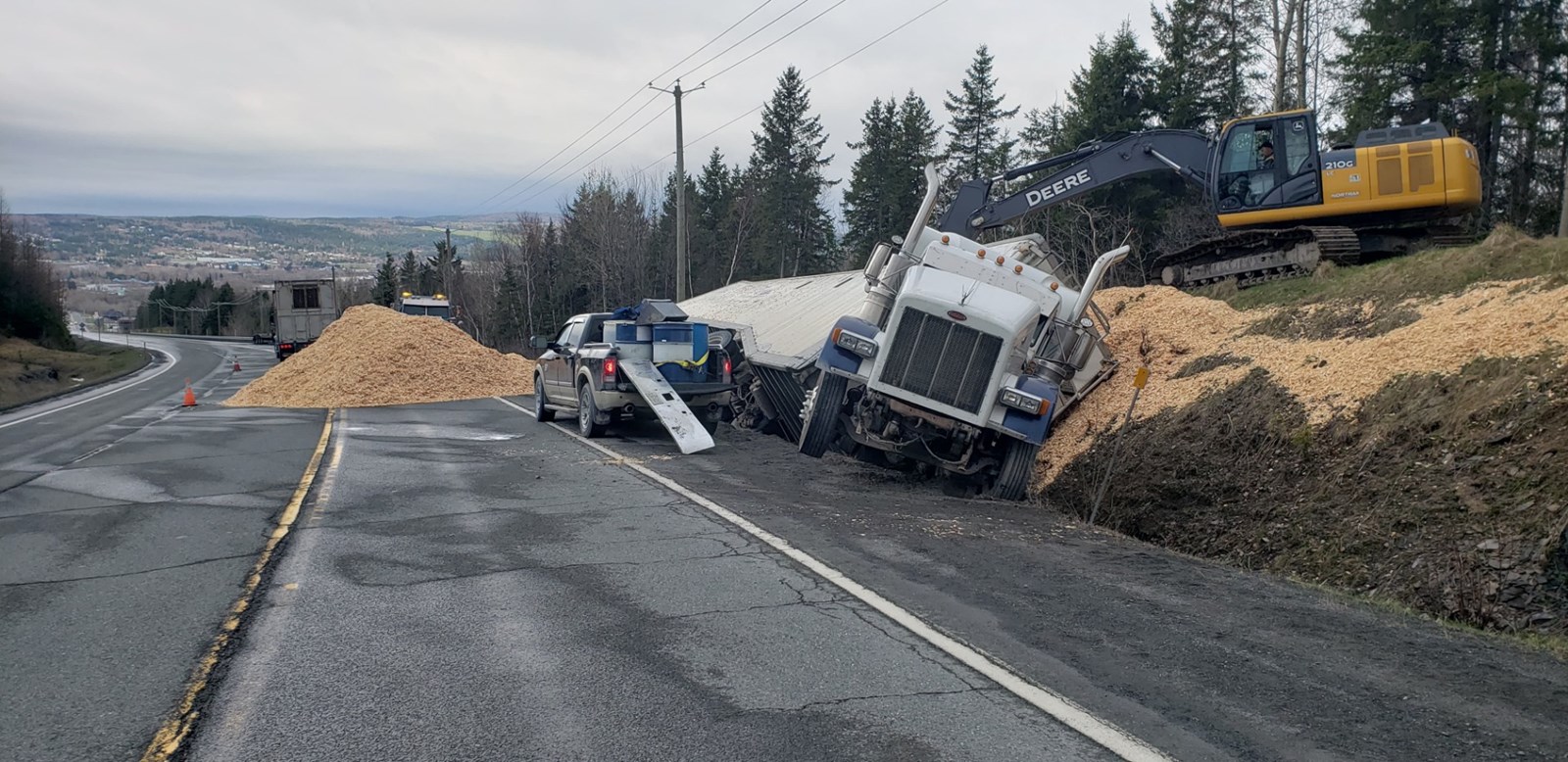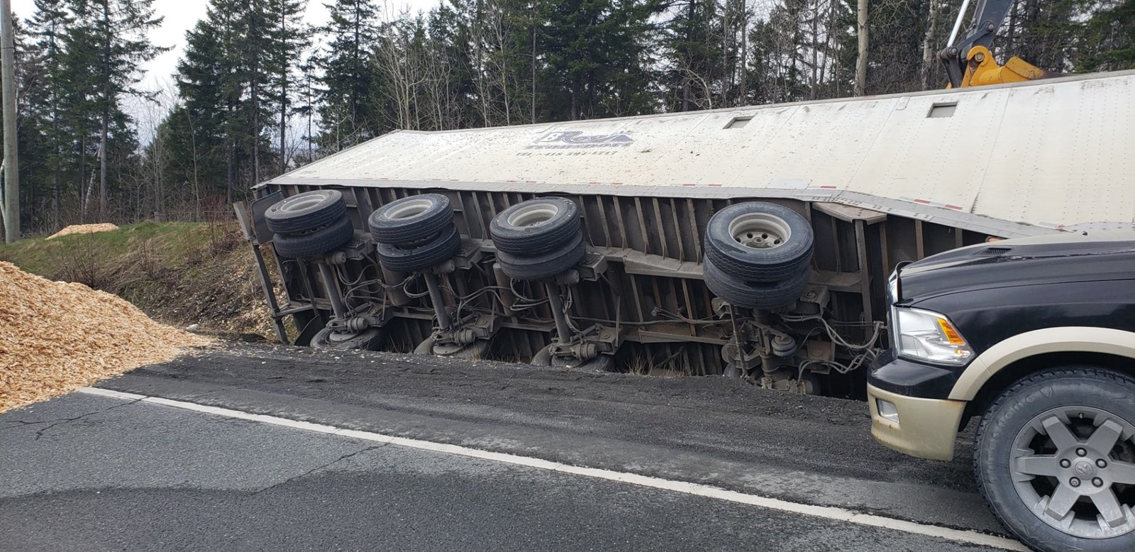 Un camion de 53 pieds se renverse sur la route 204