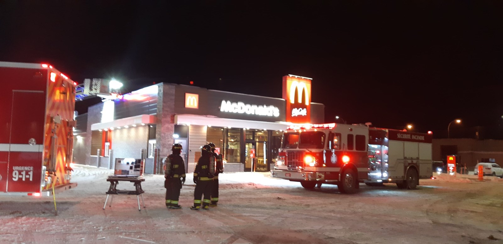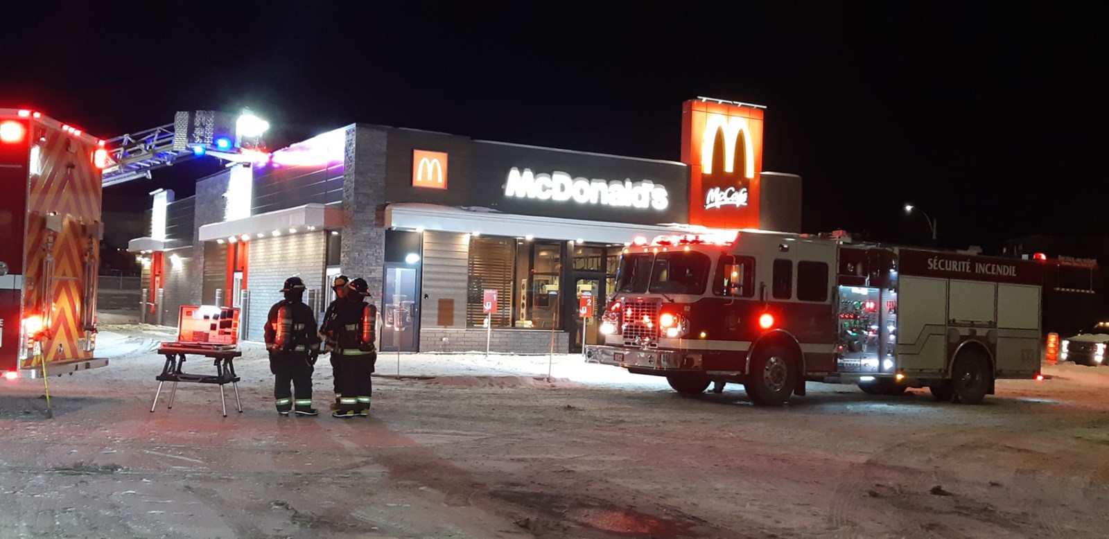 Un incendie ou une défectuosité du système de ventilation serait à l'origine de l'alarme qui a été déclenchée en début de soirée dans le tout nouveau restaurant McDonald's qui a ouvert officiellement ses portes ce matin dans le secteur Ouest de Saint-Georges.