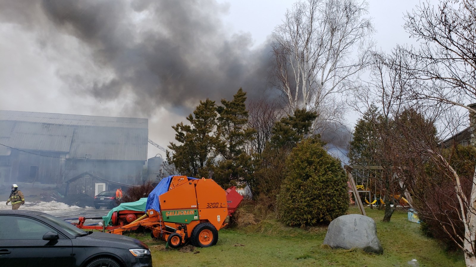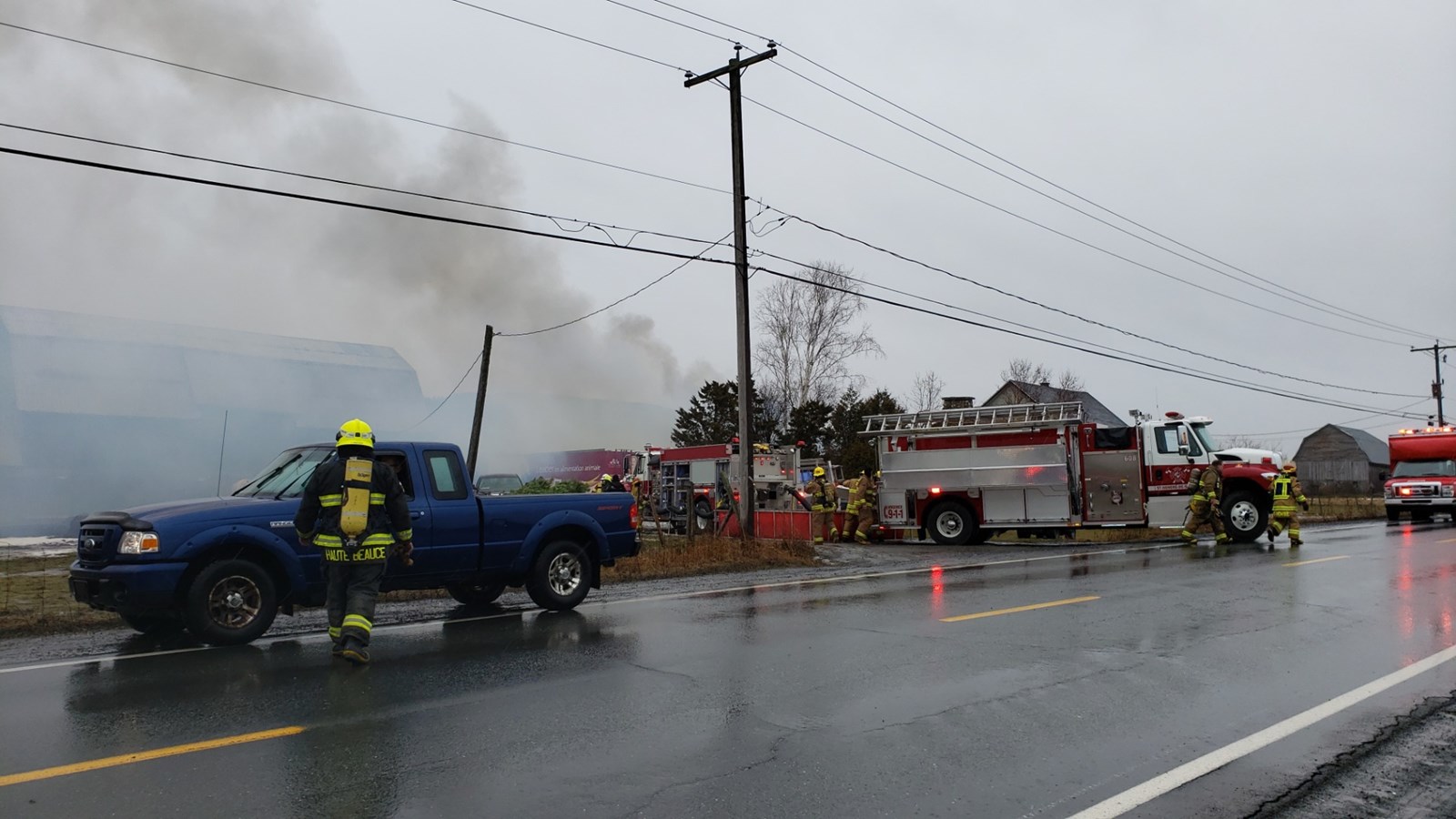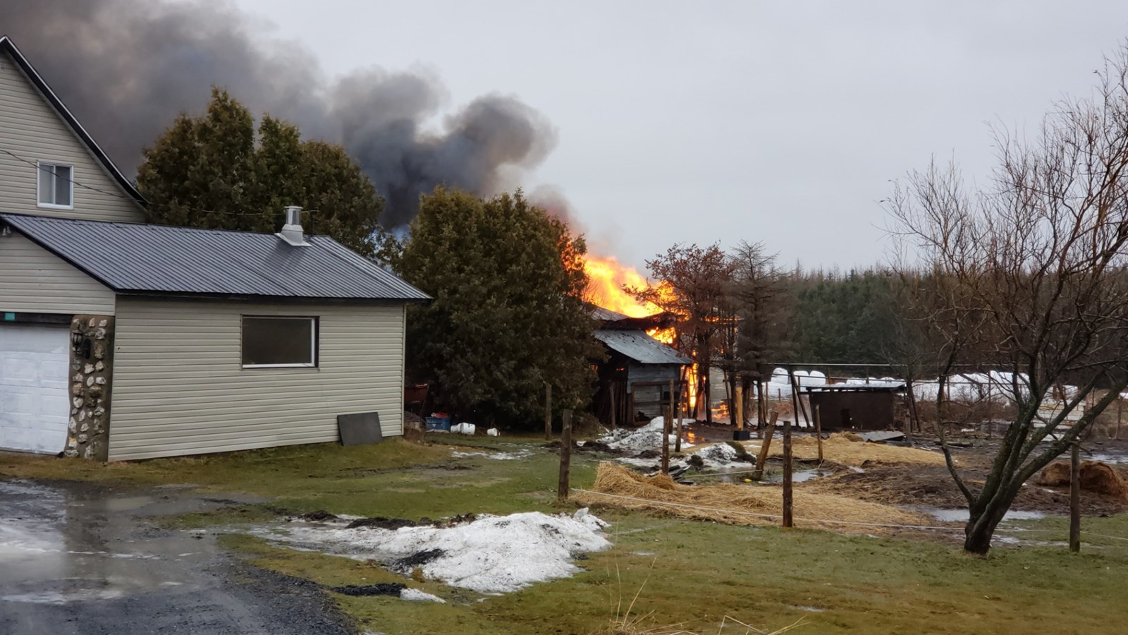 Un incendie a ravagé en milieu d'avant-midi aujourd'hui un bâtiment de ferme sur la route Shenley Ouest dans la municipalité de Saint-Honoré, à la limite de La Guadeloupe.
