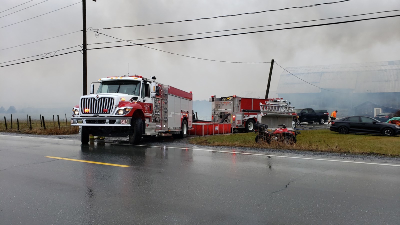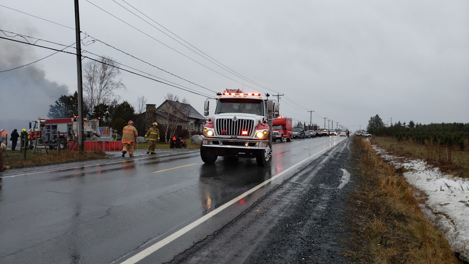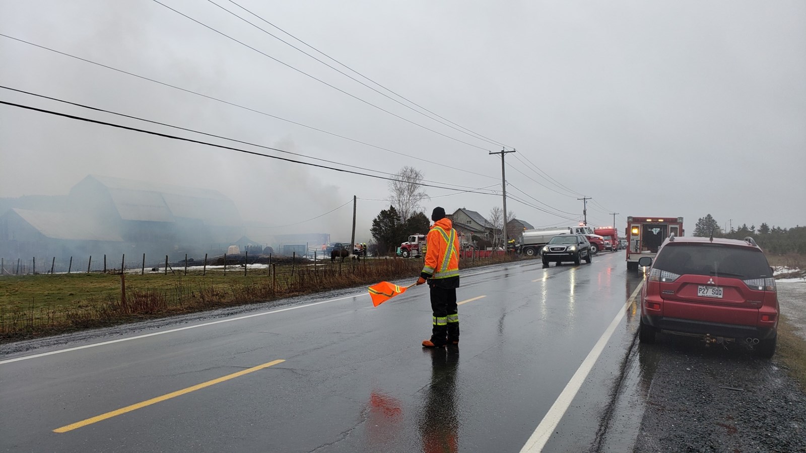 Un incendie a ravagé en milieu d'avant-midi aujourd'hui un bâtiment de ferme sur la route Shenley Ouest dans la municipalité de Saint-Honoré, à la limite de La Guadeloupe.