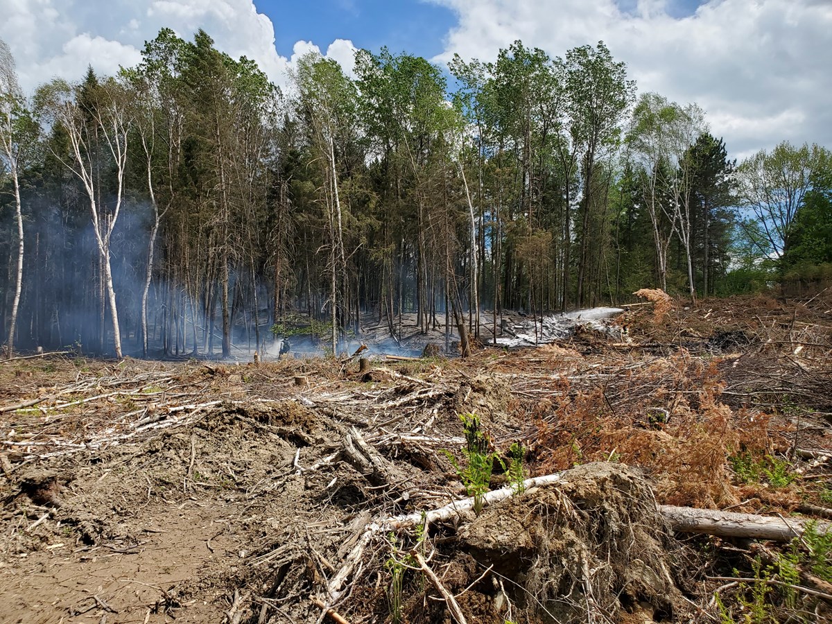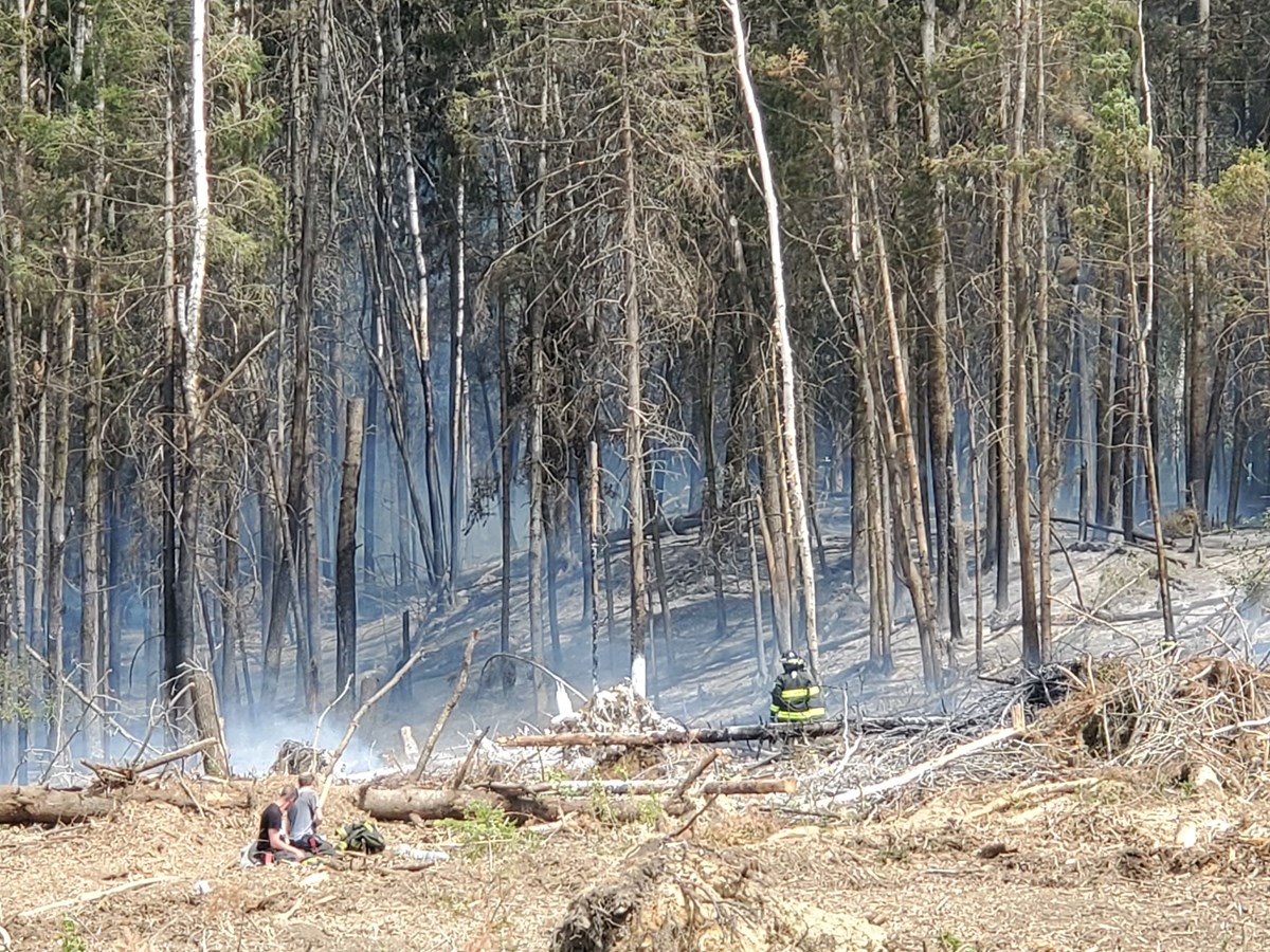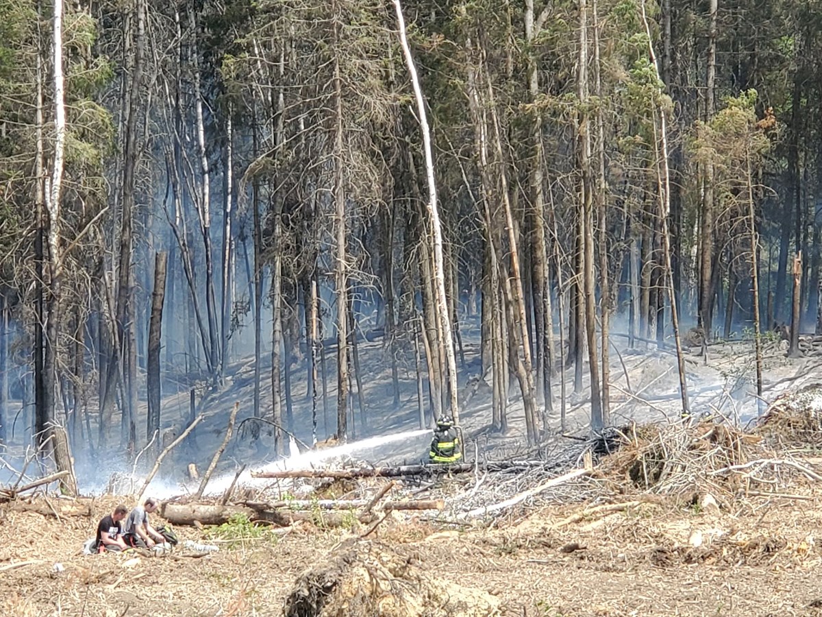 Le feu aurait pris naissance sous un engin de déchiquetage de branches (chipper) qui opérait à cet endroit. Au moment de cette mise à jour, le feu n'était pas encore complètement éteint alors que le vent s'est mis de la partie, rendant la situation instable.