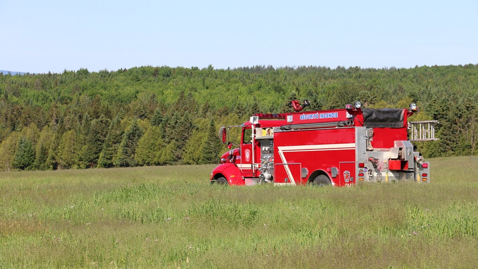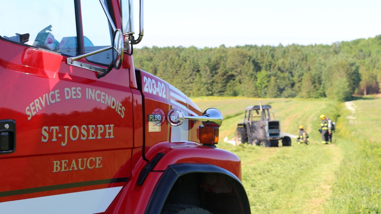 Une dizaine de pompiers sont intervenus dans un champ du rang de la grande montagne à Saint-Joseph-de-Beauce pour un tracteur qui avait pris feu.