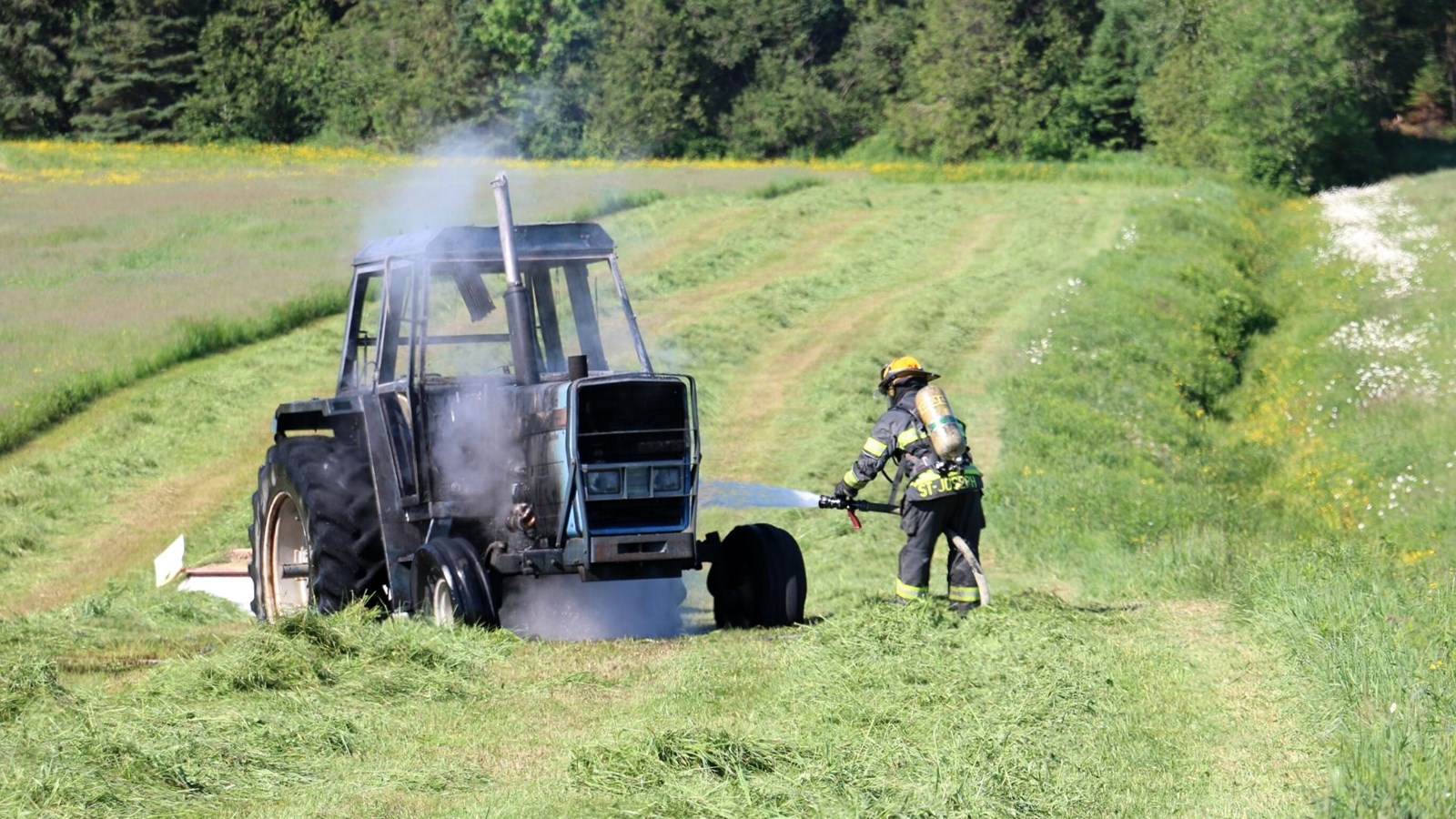 Un tracteur prend feu dans un champ de Saint-Joseph-de-Beauce