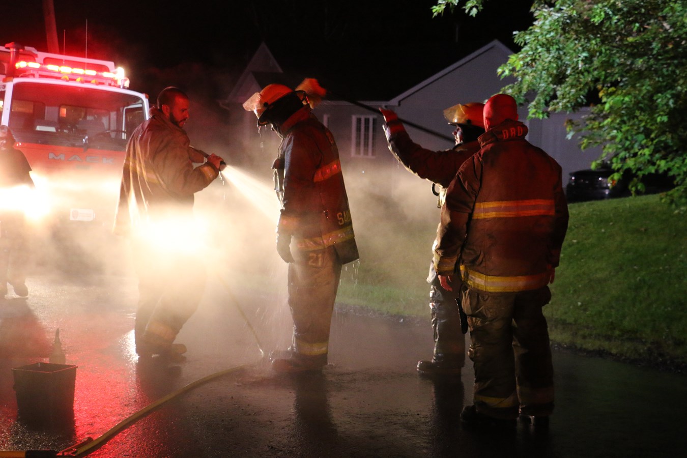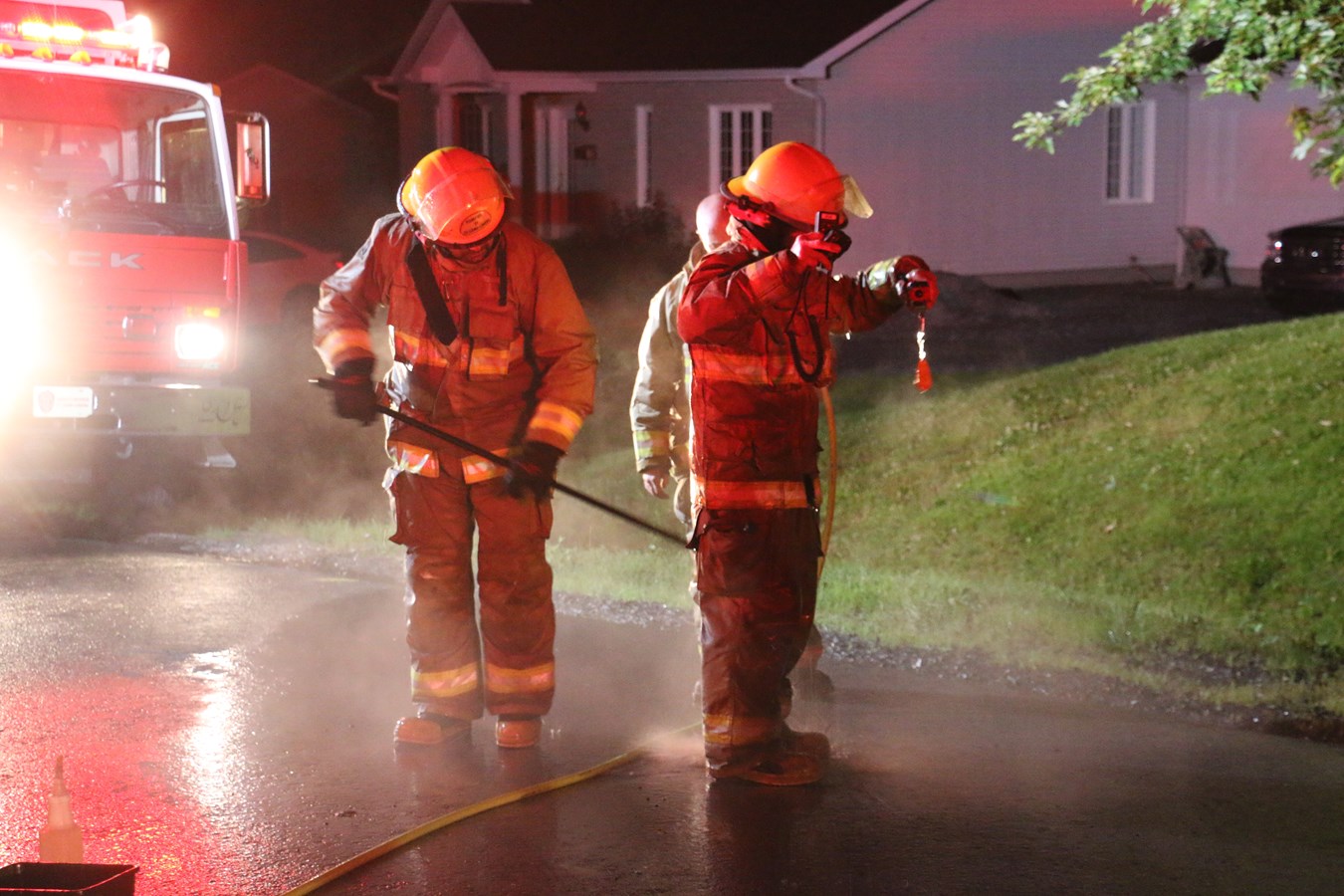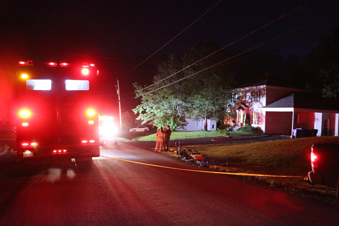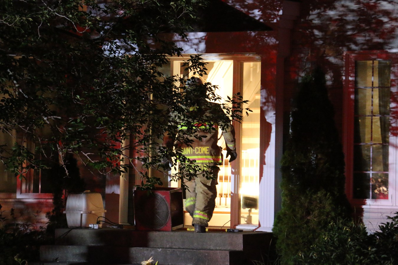 À l'arrivée des pompiers il y avait de la fumée et des flammes visibles. Le directeur du service incendie a expliqué que le feu avait pris dans la cuisine, certainement dû à un problème électrique, mais que le reste de la maison n'avait pas été trop endommagé.