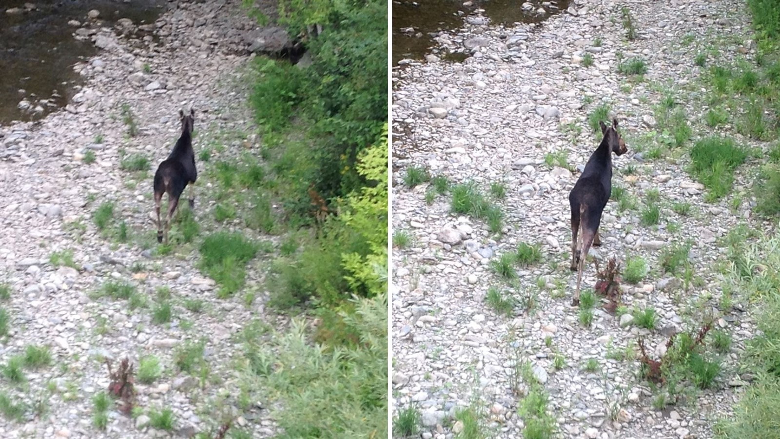 Un orignal a été aperçu et photographié ce matin en train de déambuler dans la rivière Chaudière, en plein centre de Beauceville.