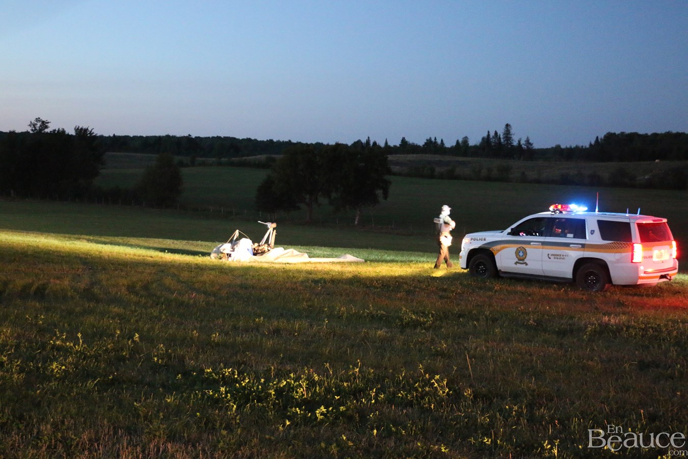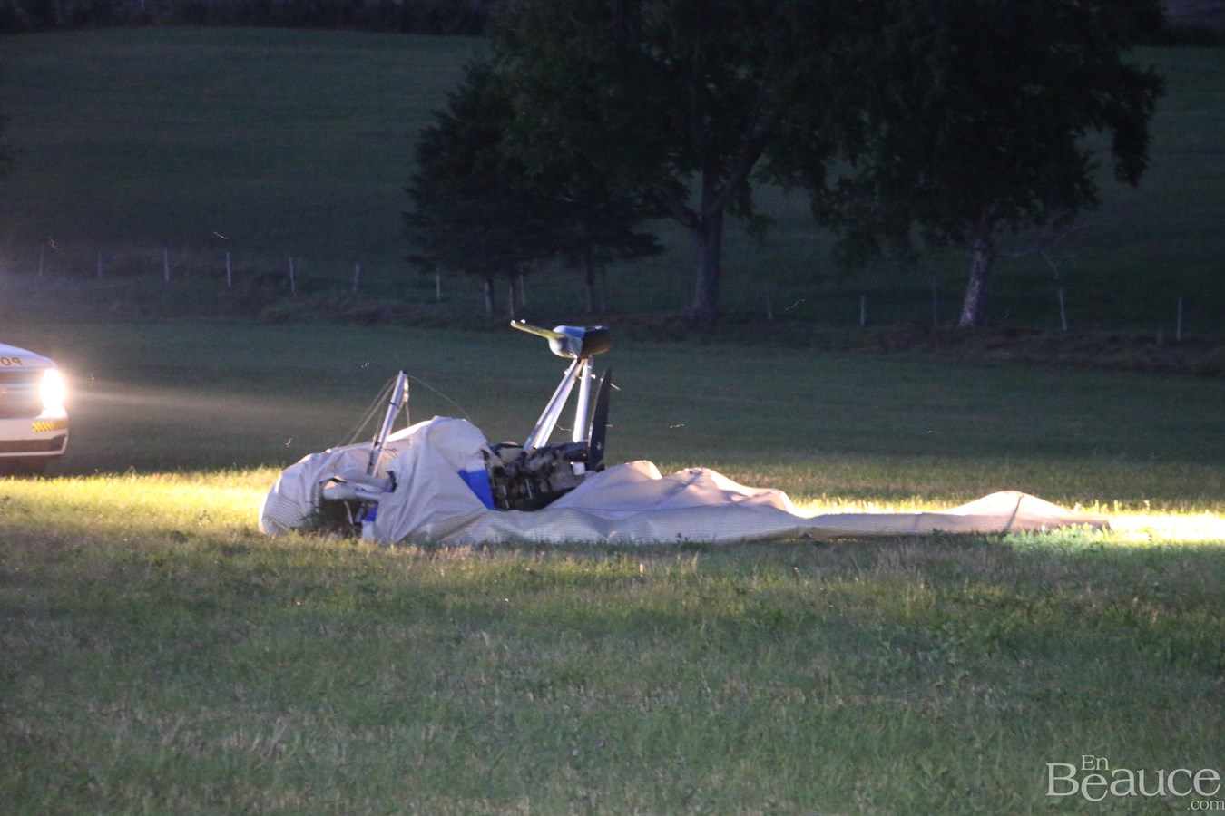 Un aéronef de type deltaplane s'est écrasé, vers 19 h 40 ce soir, dans un champ de la Ferme Baillargeon de la route 271 à Saint-Benoit-Labre.