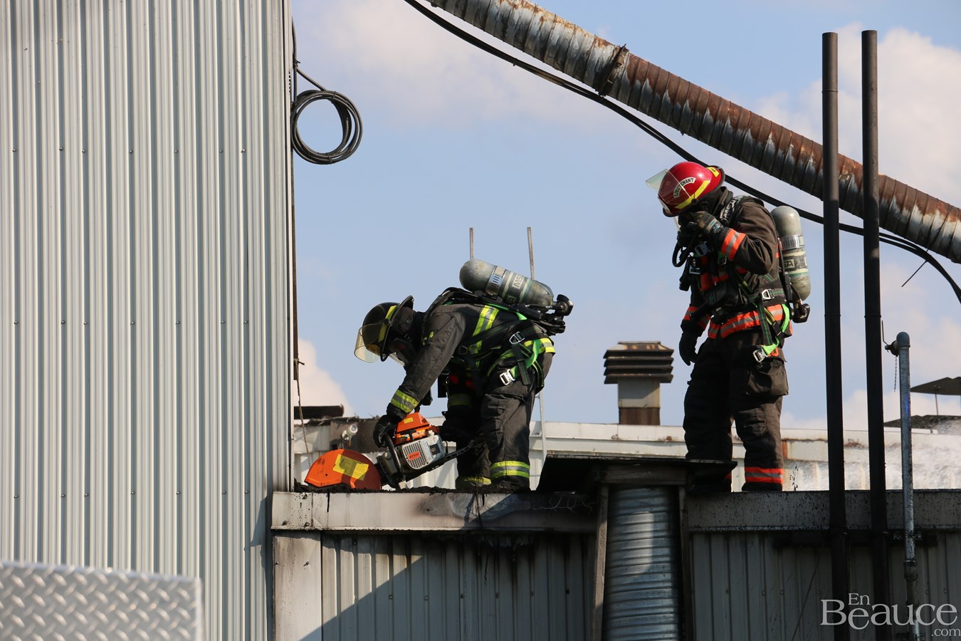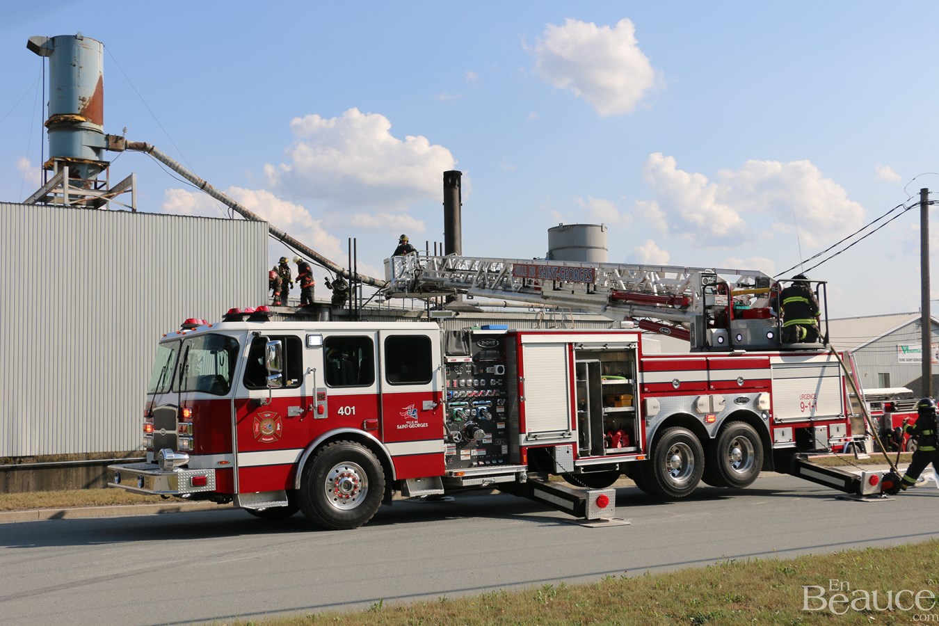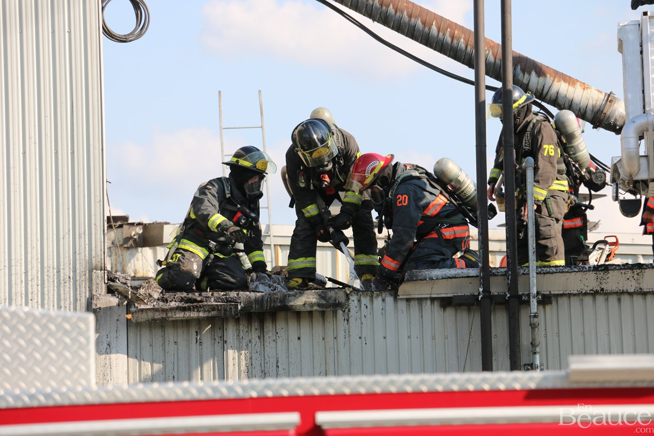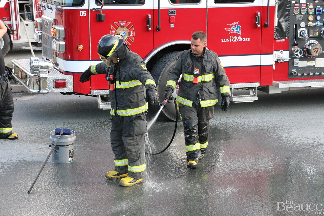 D'après le chef de division aux opérations du service incendie de Saint-Georges, Frédéric Morin, il s'agirait d'un feu de surface au niveau du toit.
