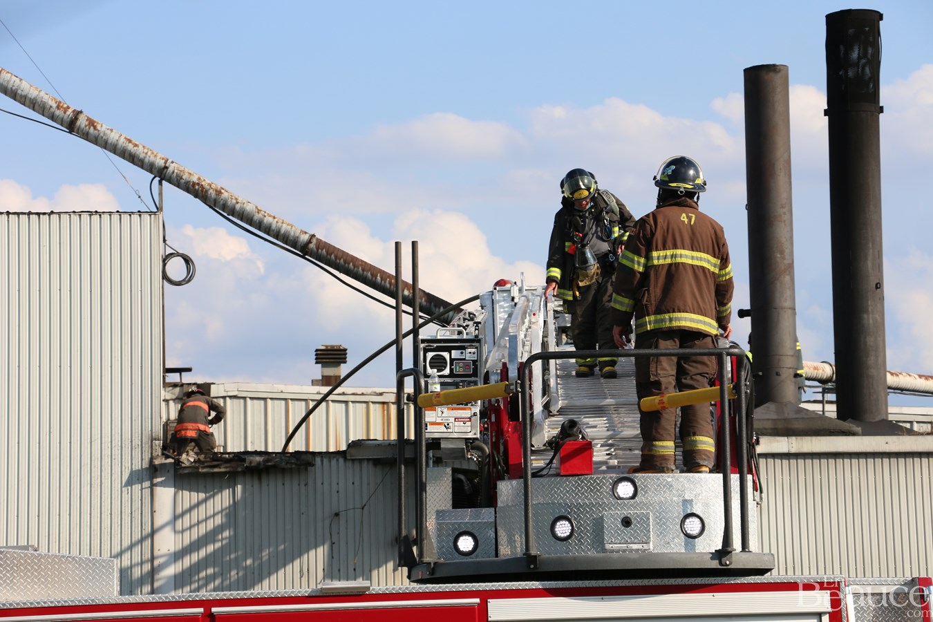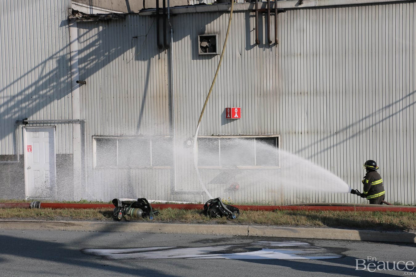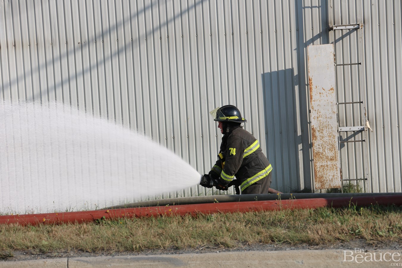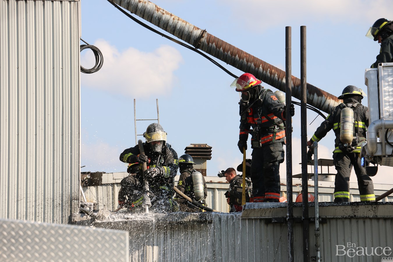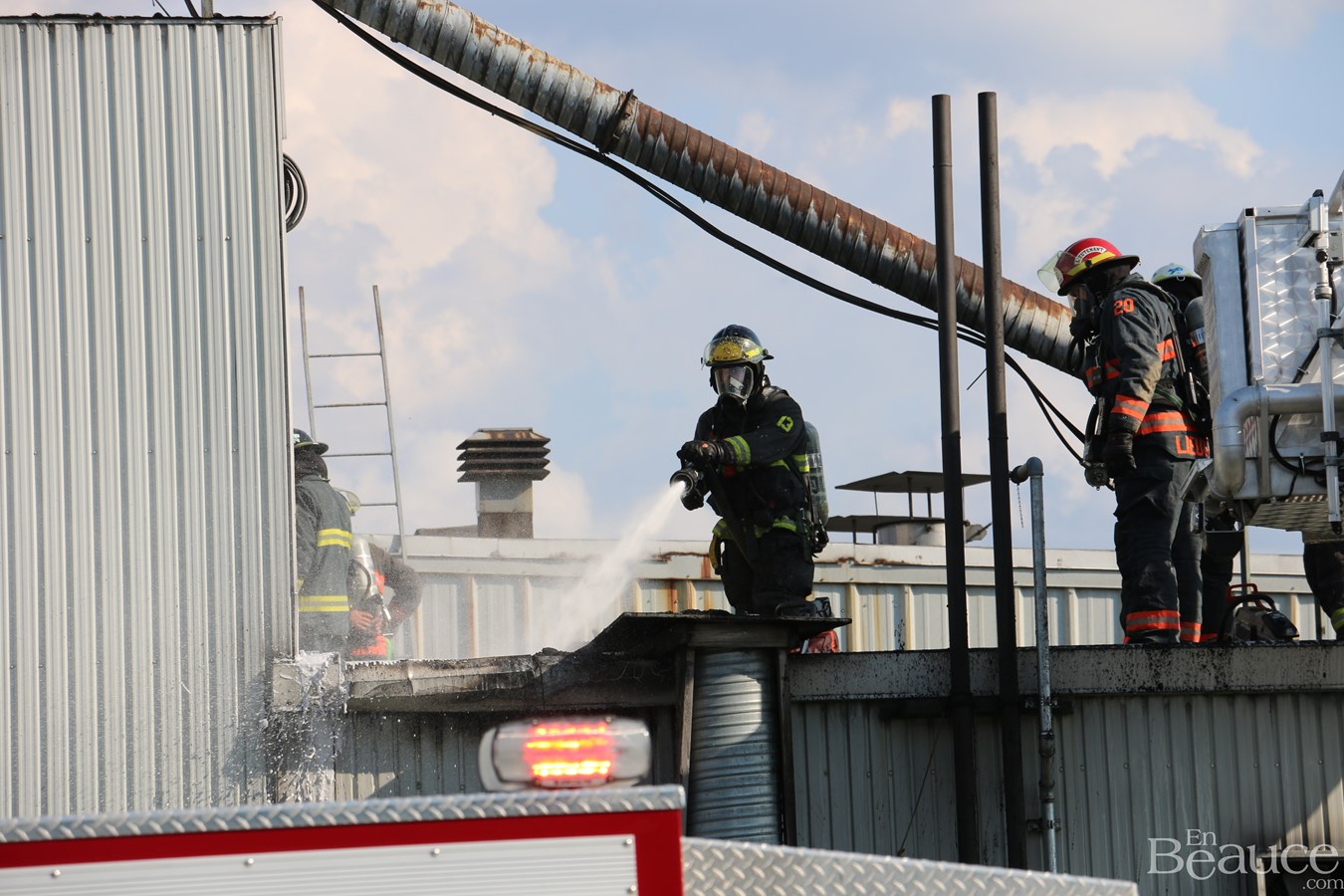 D'après le chef de division aux opérations du service incendie de Saint-Georges, Frédéric Morin, il s'agirait d'un feu de surface au niveau du toit.