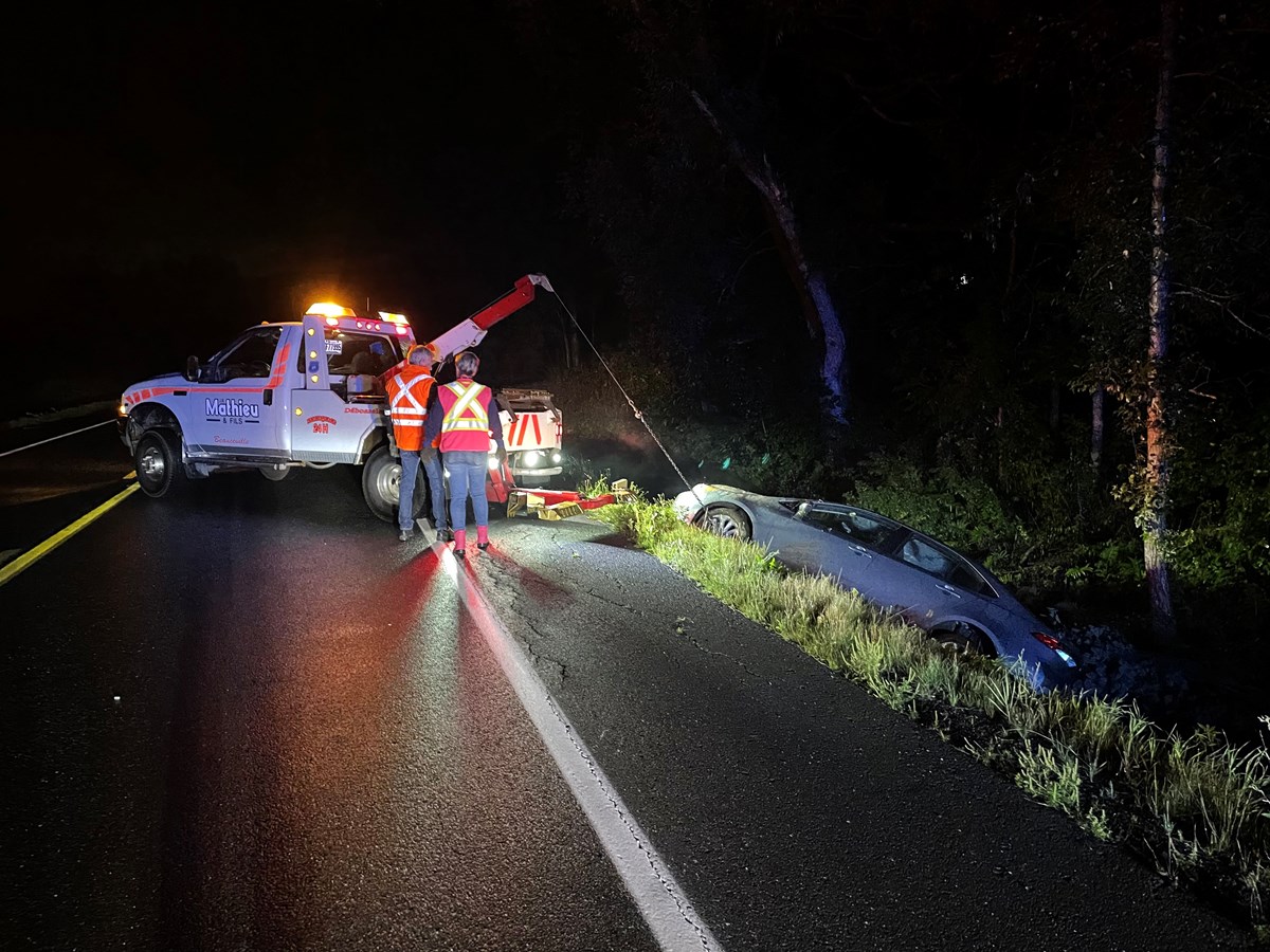 Dans la nuit de dimanche à lundi, vers minuit 35, une conductrice a fait une sortie de route près du 503 avenue Lambert à Beauceville.