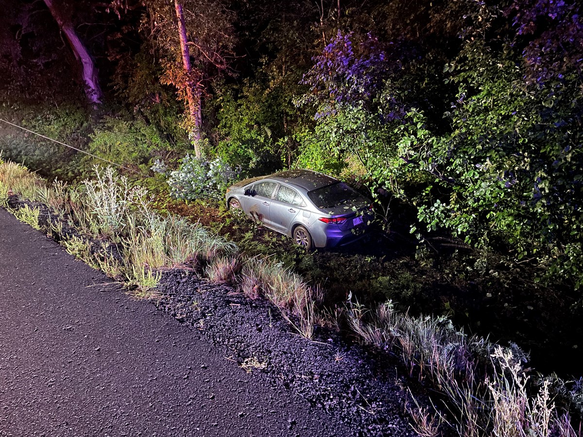 Son véhicule est tombé dans un fossé et les coussins se sont déployés.