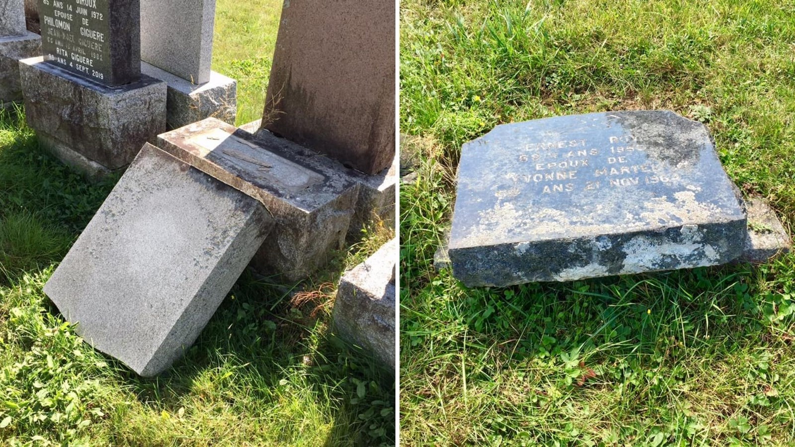 « Des individus sans conscience et n’éprouvant aucun respect pour les personnes décédées ont renversé ces pierres tombales [...] Qu’est-ce qui fait en sorte que des gens agissent de cette manière? Ces actes ne leur rapportent absolument rien, et les familles éprouvées devront débourser plusieurs dizaines de dollars afin de faire réparer les dégâts causés par des êtres n’ayant aucun scrupule », a écrit Yvon Thibodeau sur sa page Facebook au moment de publier ses clichés.
