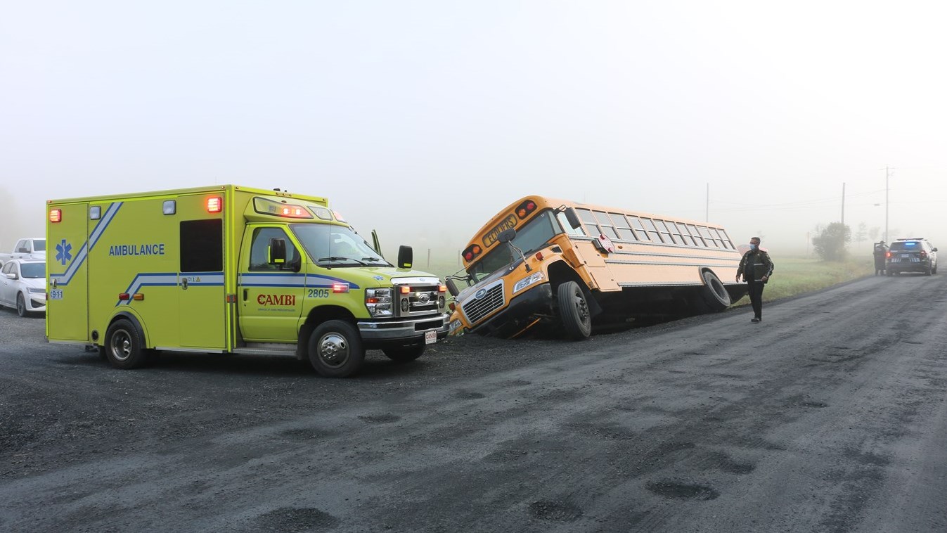 Vers 7 h 25, ce matin, les services d’urgence ont été appelés dans le secteur de Saint-Simon-les-Mines pour un autobus scolaire qui a effectué une sortie de route.
