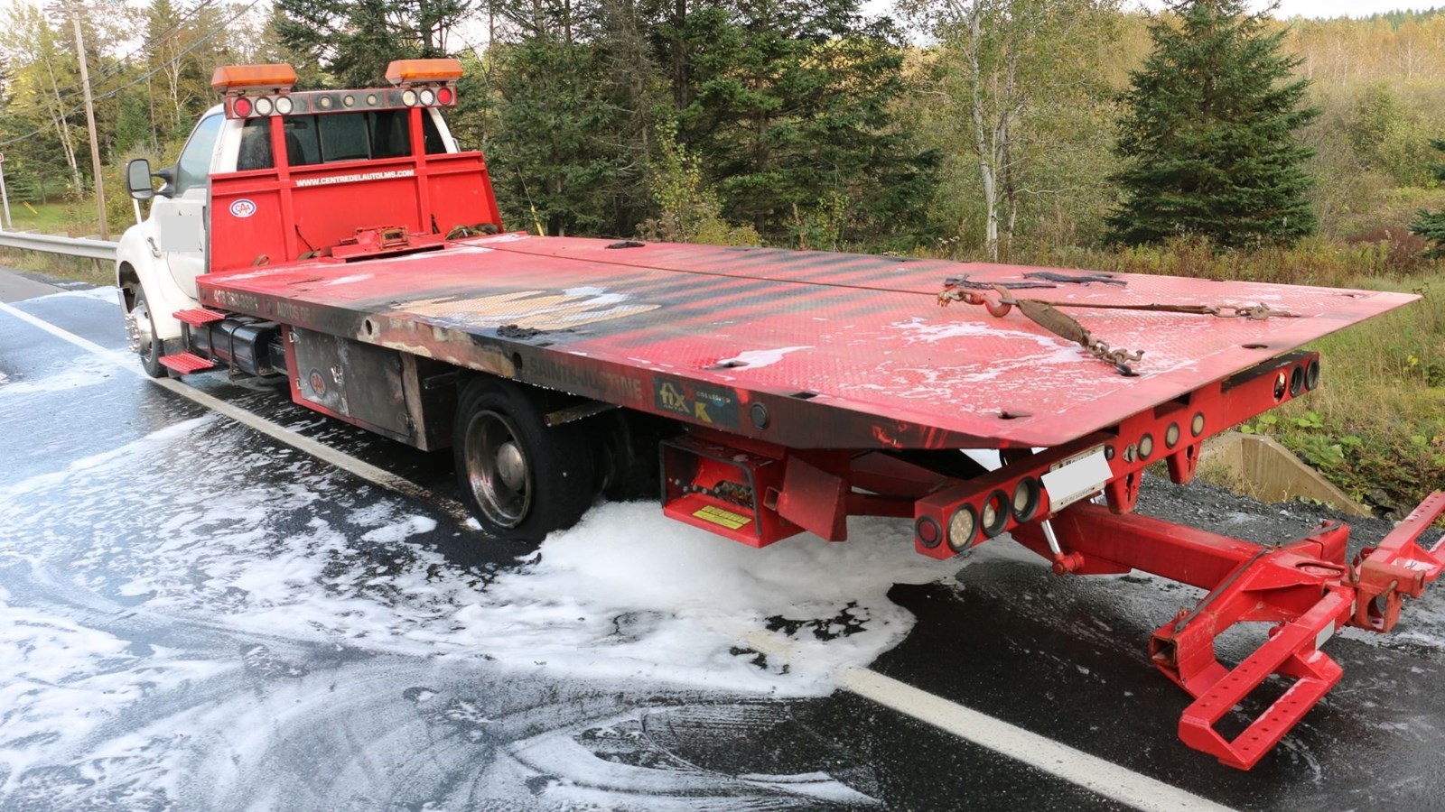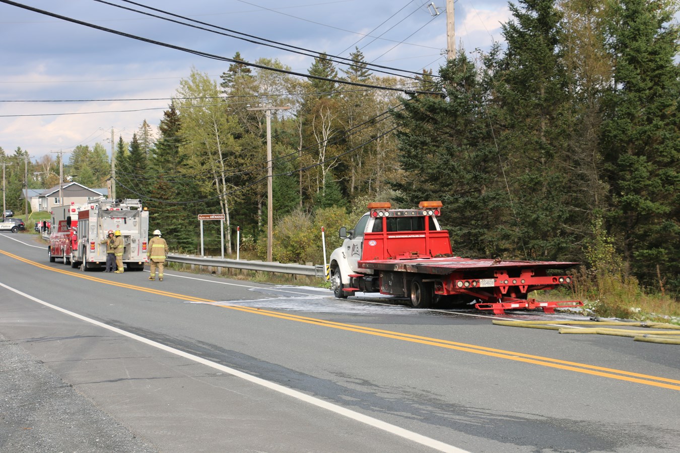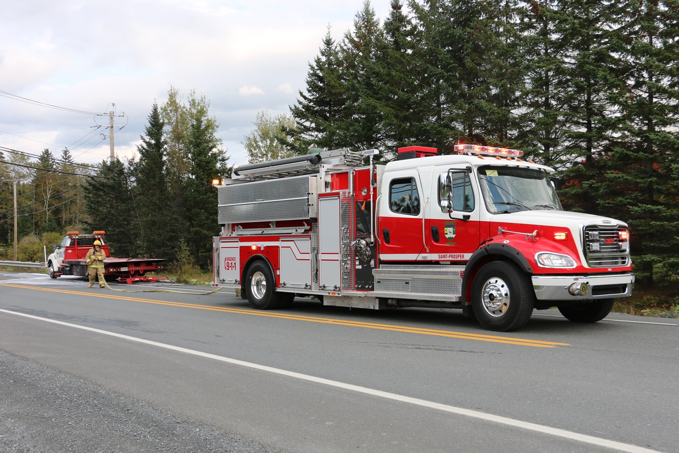 Une remorqueuse a pris feu vers 15 h 20 cet après-midi le long de la route 204 à Saint-Prosper.