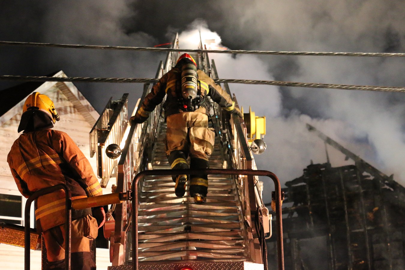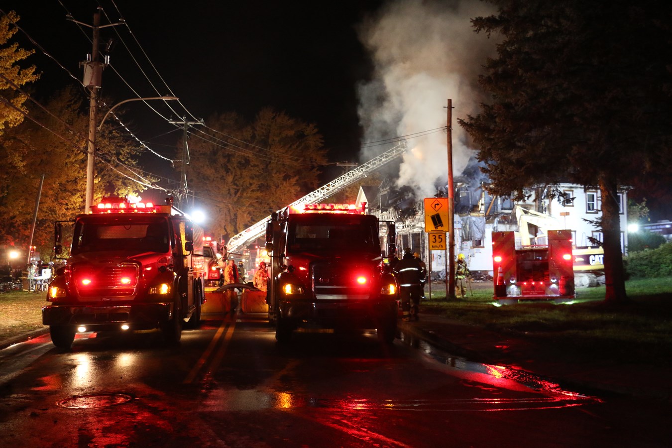 Au total, près de 65 pompiers ont travaillé sur cet événement entre 16 h 40 et 23 h 30, soit ceux des services incendie de Scott, Saint-Lambert, Saint-Hénédine, Sainte-Marguerite, Saint-Bernard, Saint-Isidore ainsi que Sainte-Marie. La Sûreté du Québec était également sur place pour gérer la circulation puisque la route a dû être fermée le temps de l'intervention. Il y a aussi eu une coupure de courant dans le secteur.