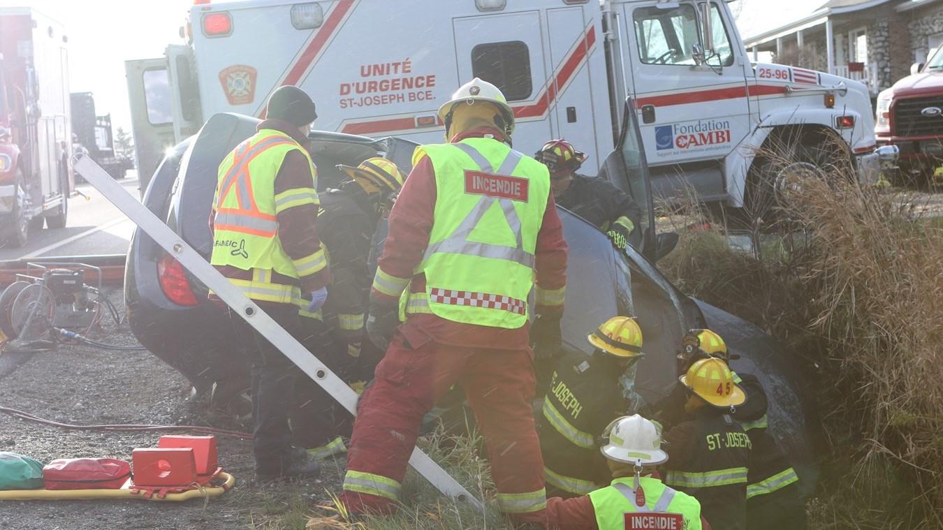 Le Service incendie de Tring-Jonction est arrivé sur les lieux, mais a dû faire appel au Service incendie de Saint-Joseph pour venir avec les pinces de désincarcération afin de sortir la victime de sa voiture.