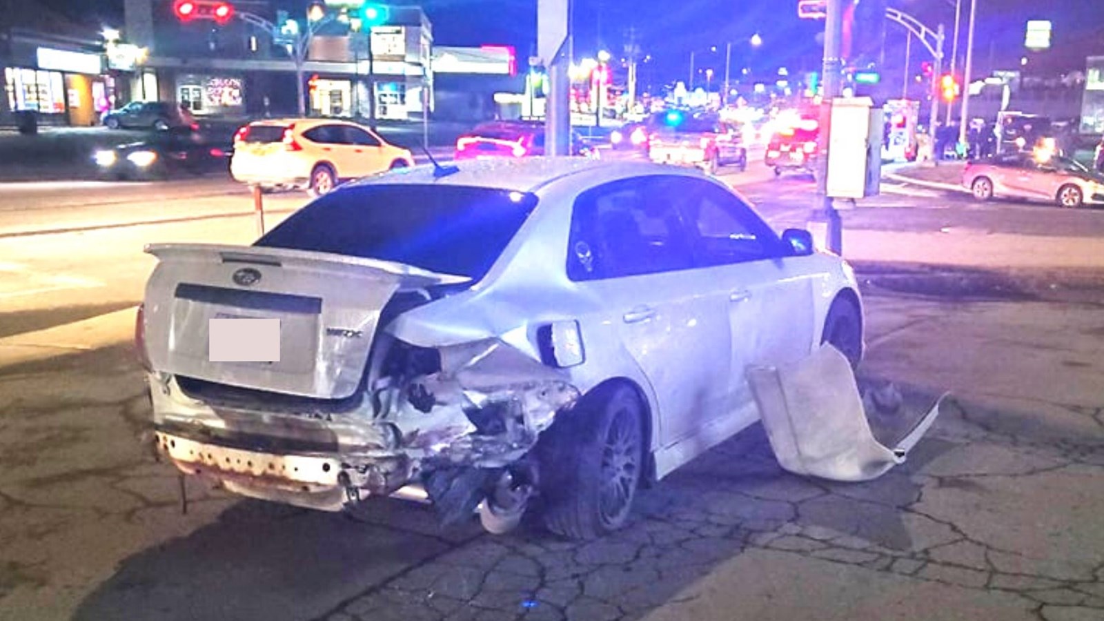 Un conducteur, qui attendait au feu rouge à l'intersection de la 94e rue pour effectuer un virage à gauche, a été embouti par une voiture.