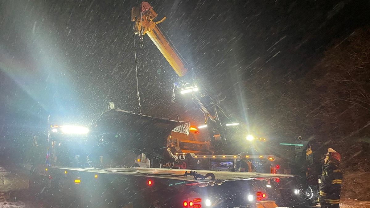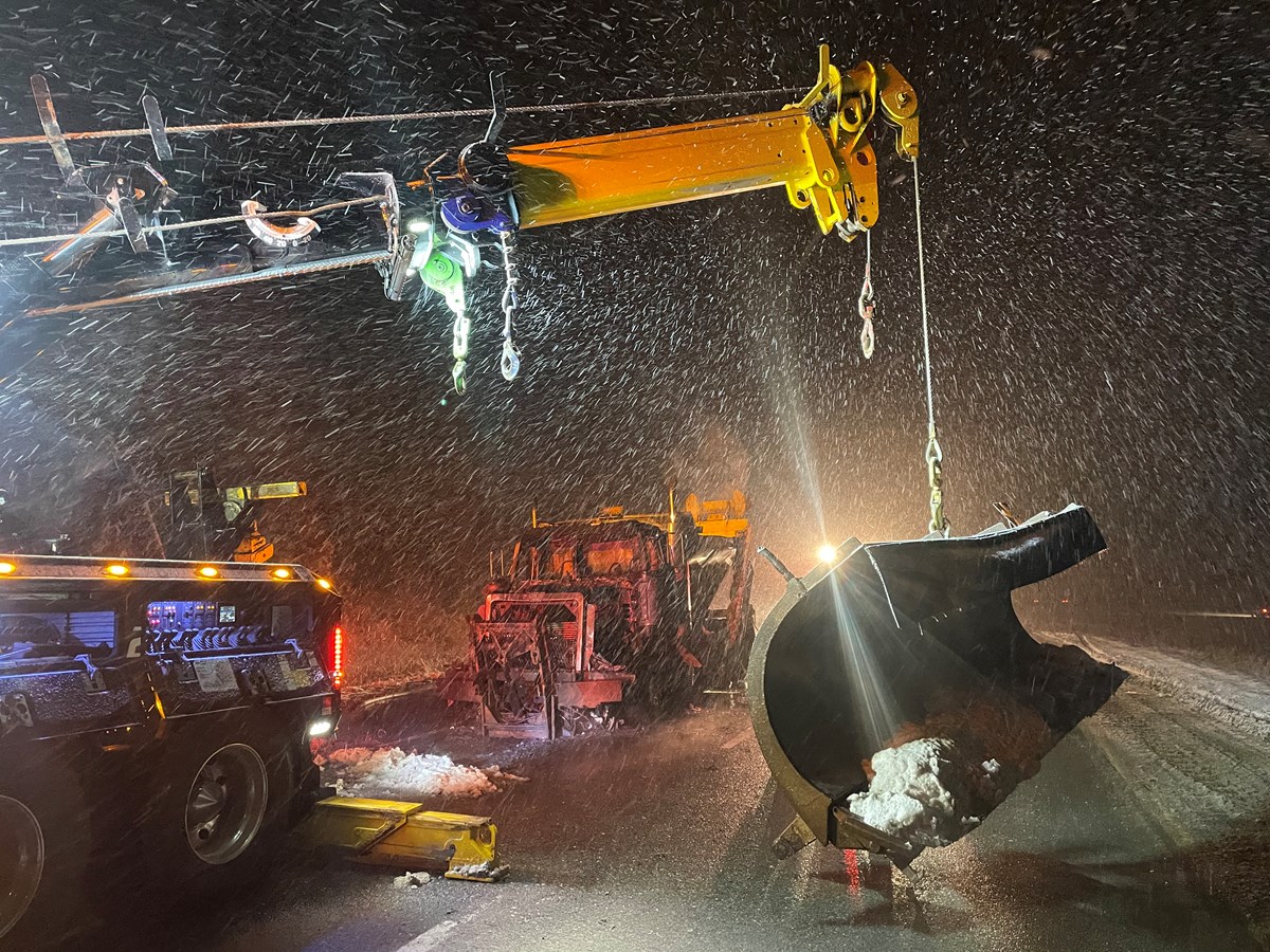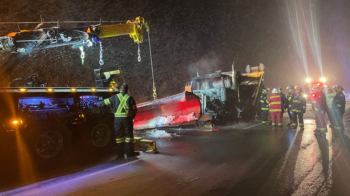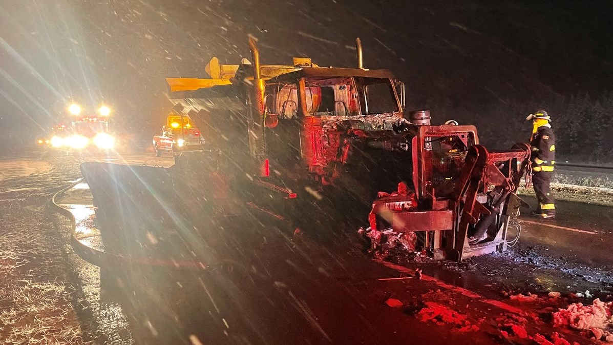 À leur arrivée, le véhicule était totalement couvert par les flammes et la fumée. Le ministère des Transports a fermé l’autoroute pendant quelques heures le temps de l’extinction et du remorquage. Le degré de dangerosité était considéré comme élevé. Ils ont dû procéder à démanteler les grattes pour transporter la carcasse de la déneigeuse.