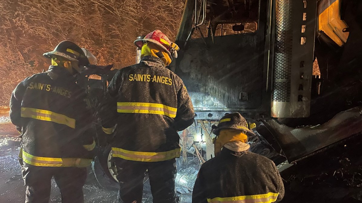 Selon le chef du Service incendie de Saints-Anges, il n’y aura pas d’enquête. Une dizaine de pompiers étaient sur place en compagnie de la Sûreté du Québec.