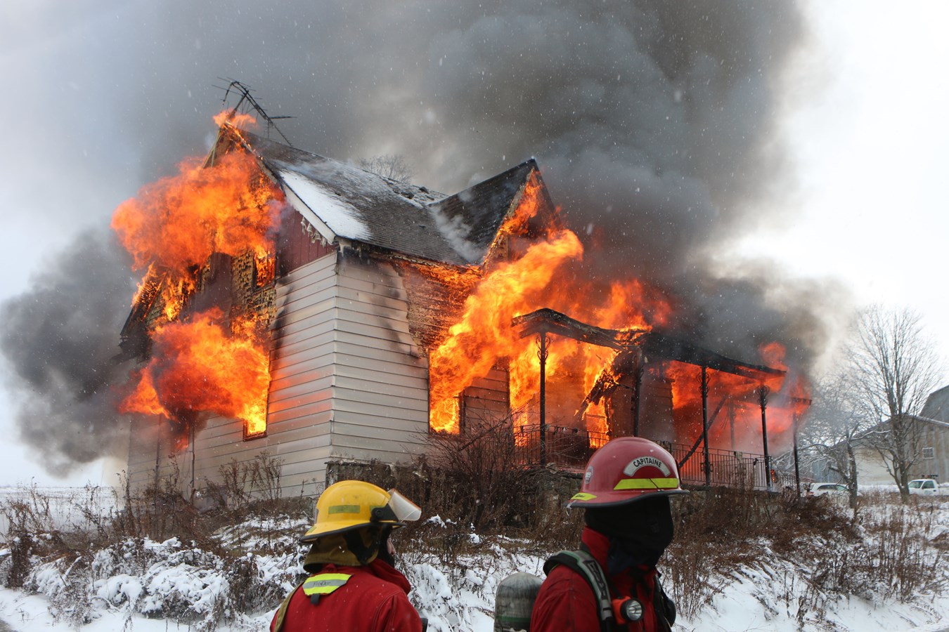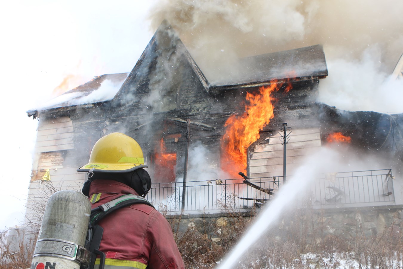 Les sapeurs-pompiers ne demandent pas mieux que de pouvoir mettre en pratique leurs habiletés et techniques pour éteindre un feu qui fait rage.