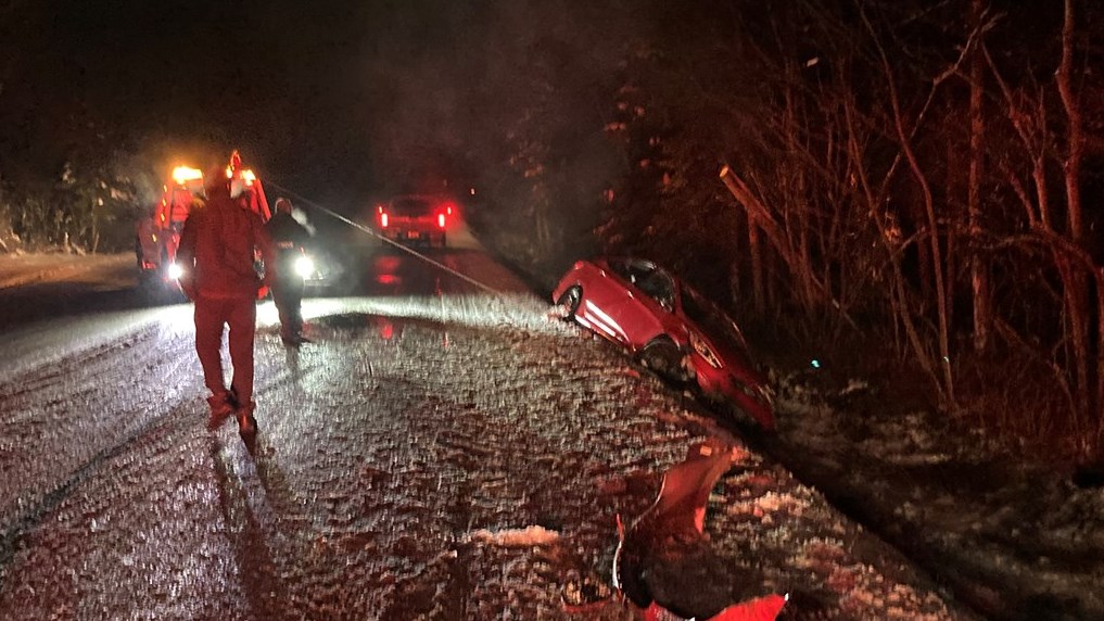 L'état de la chaussée, rendue glissante en raison de la pluie et du verglas, serait en cause dans cette sortie de route.