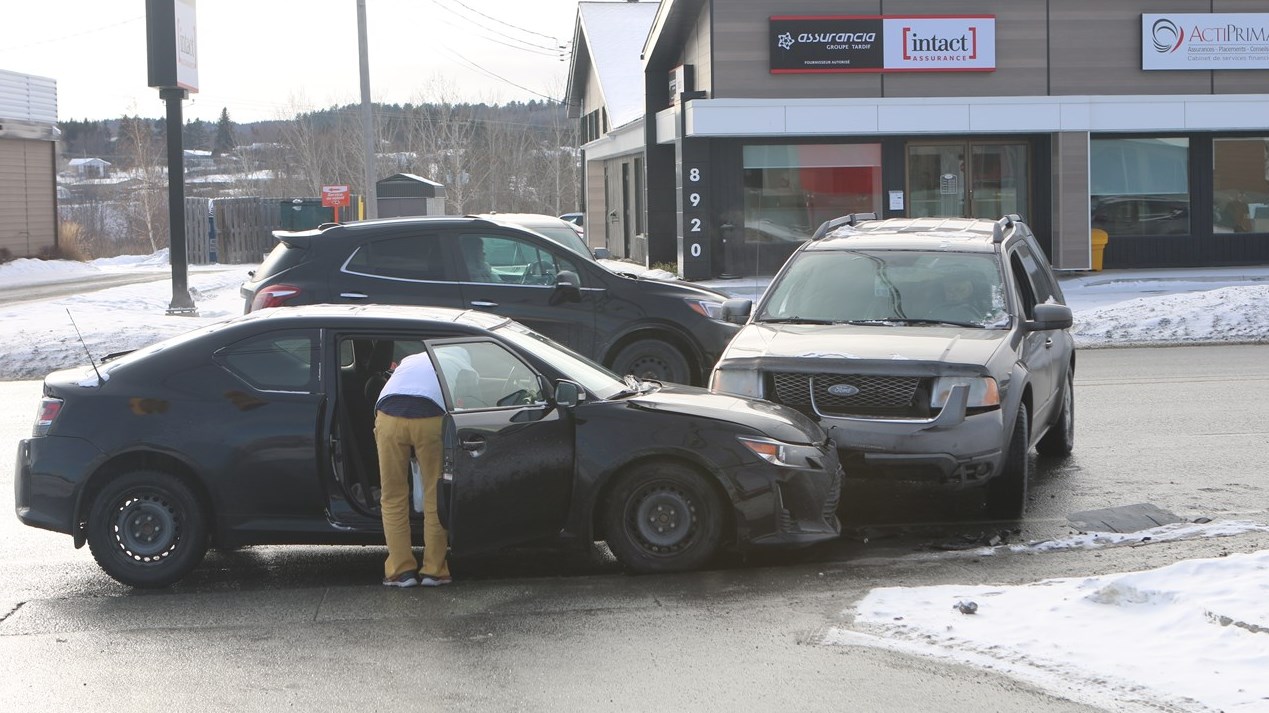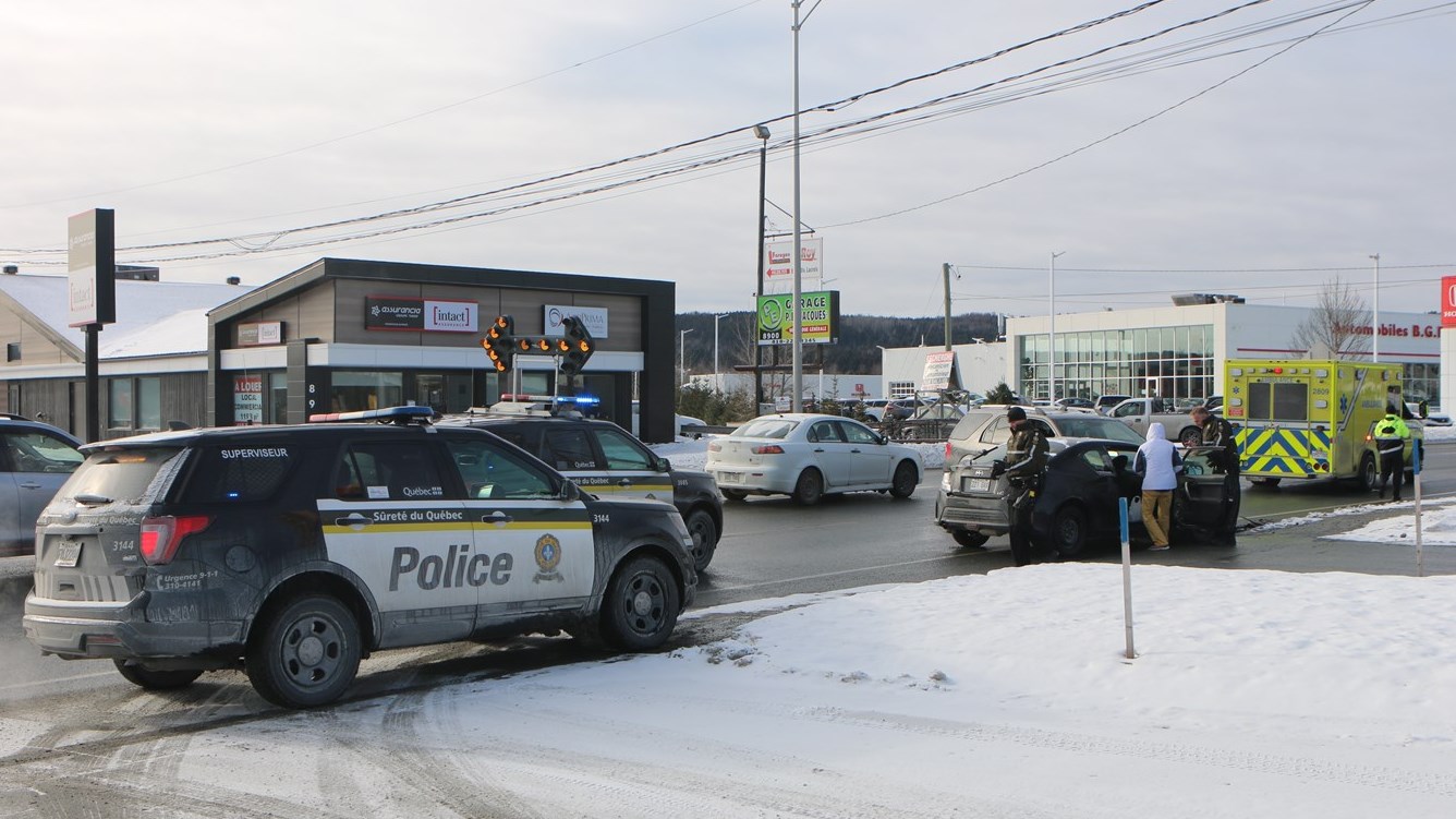Une voiture, qui circulait en direction Sud sur le boulevard Lacroix, a tenté un virage à gauche pour se rendre au resto McDonald's de l'endroit, lorsqu'elle a été frappée par un véhicule qui venait en sens inverse.