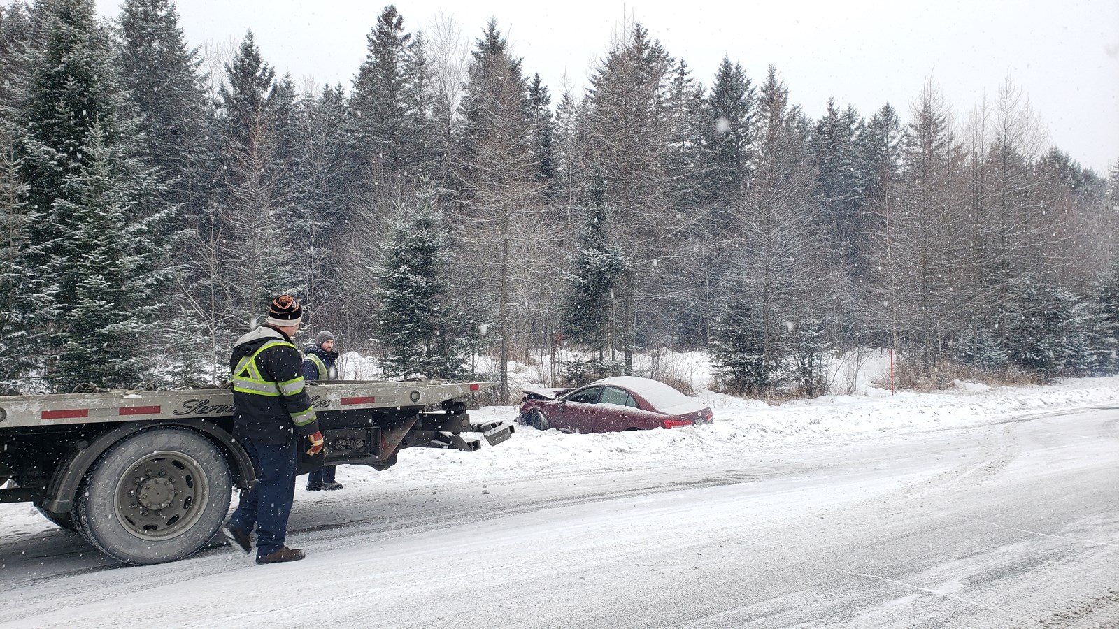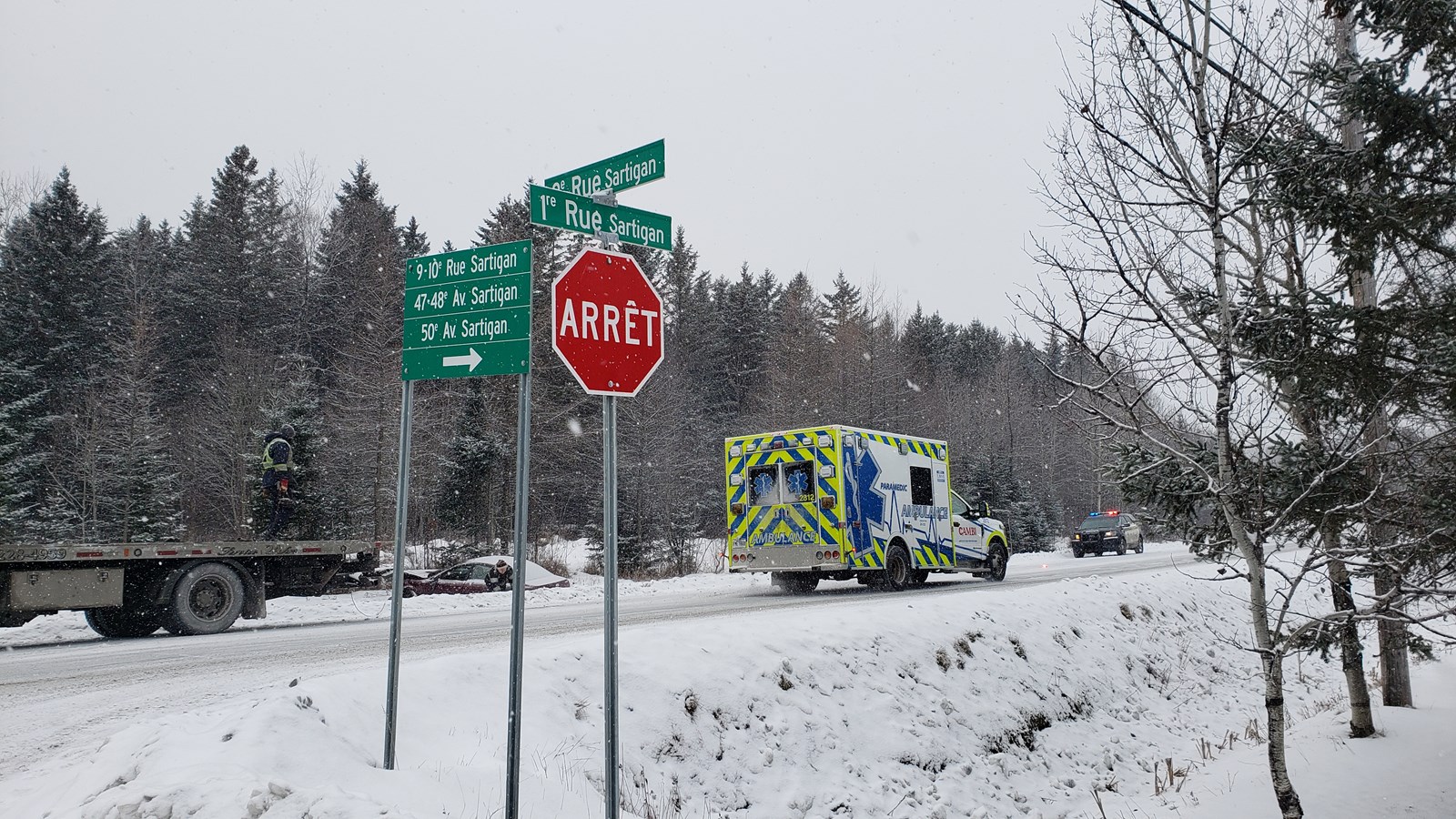 Un véhicule a fait une sortie de route et des tonneaux au croisement de la 8e et de la 1re rue Sartigan à Saint-Georges vers 9 h 30 ce matin.