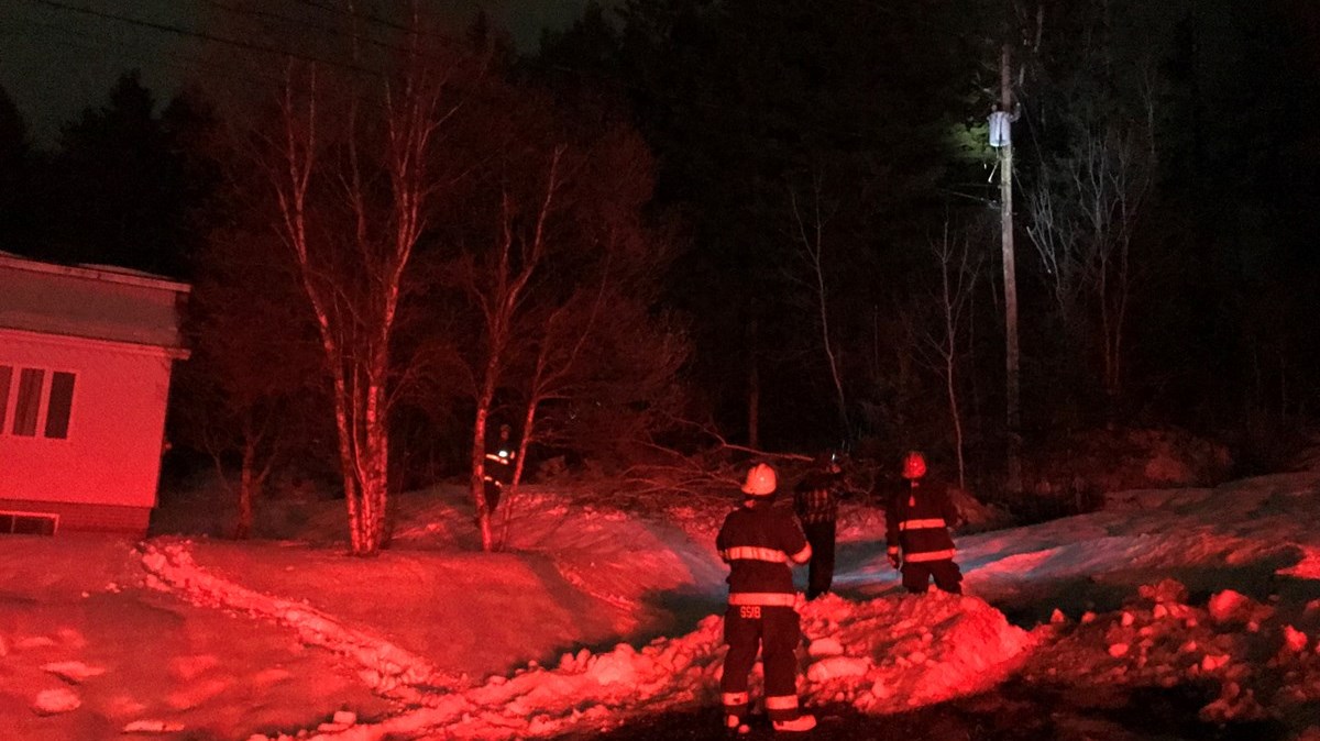 Intervention du service incendie de Beauceville sur la 32e Avenue pour une entrée électrique arrache par un arbre.
