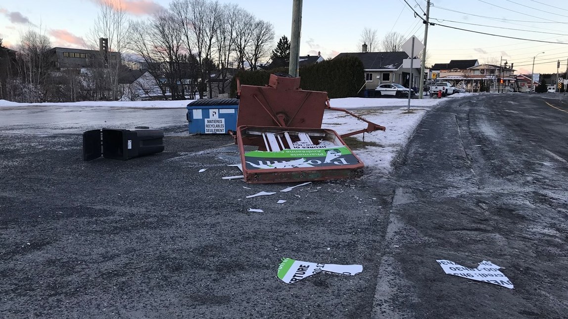 On trouve aussi plusieurs endroits avec des débris de toutes sortes provenant de structures diverses, comme des abris d'auto et des affiches, qui n'ont pas résisté au vent.