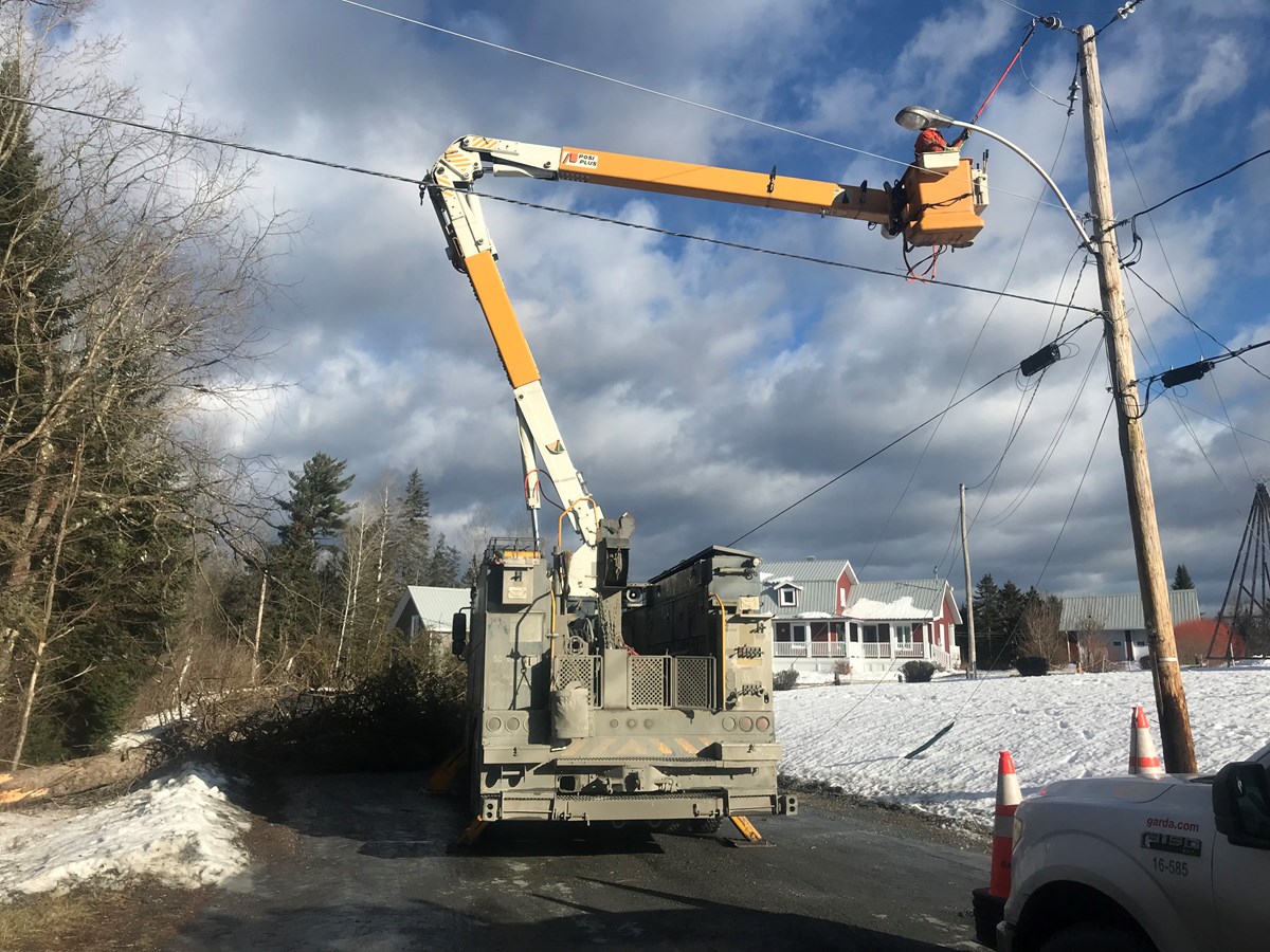 Des équipes de monteur de lIgne sont au travail pour rétablir le courant dans les secteurs affectés.