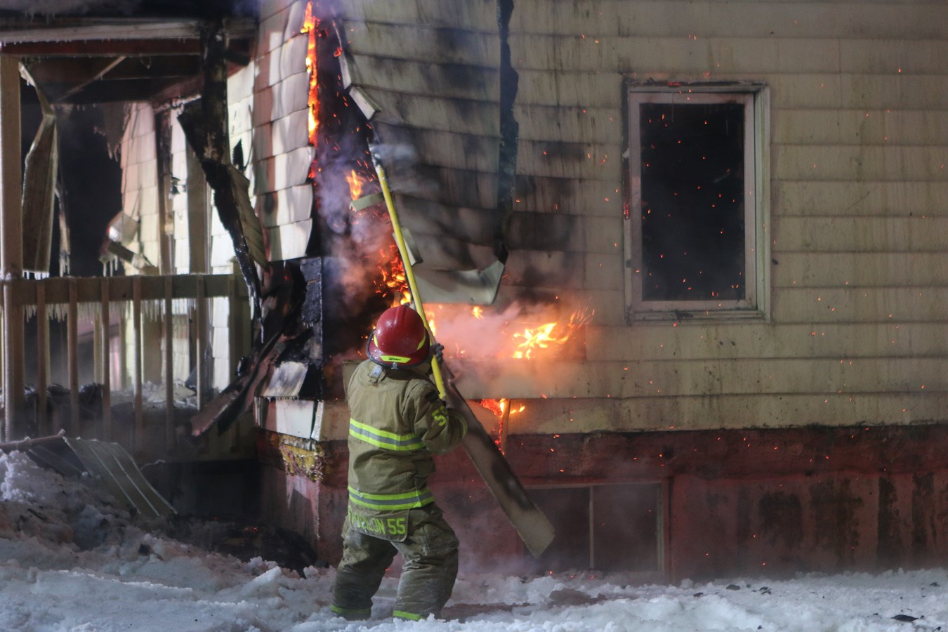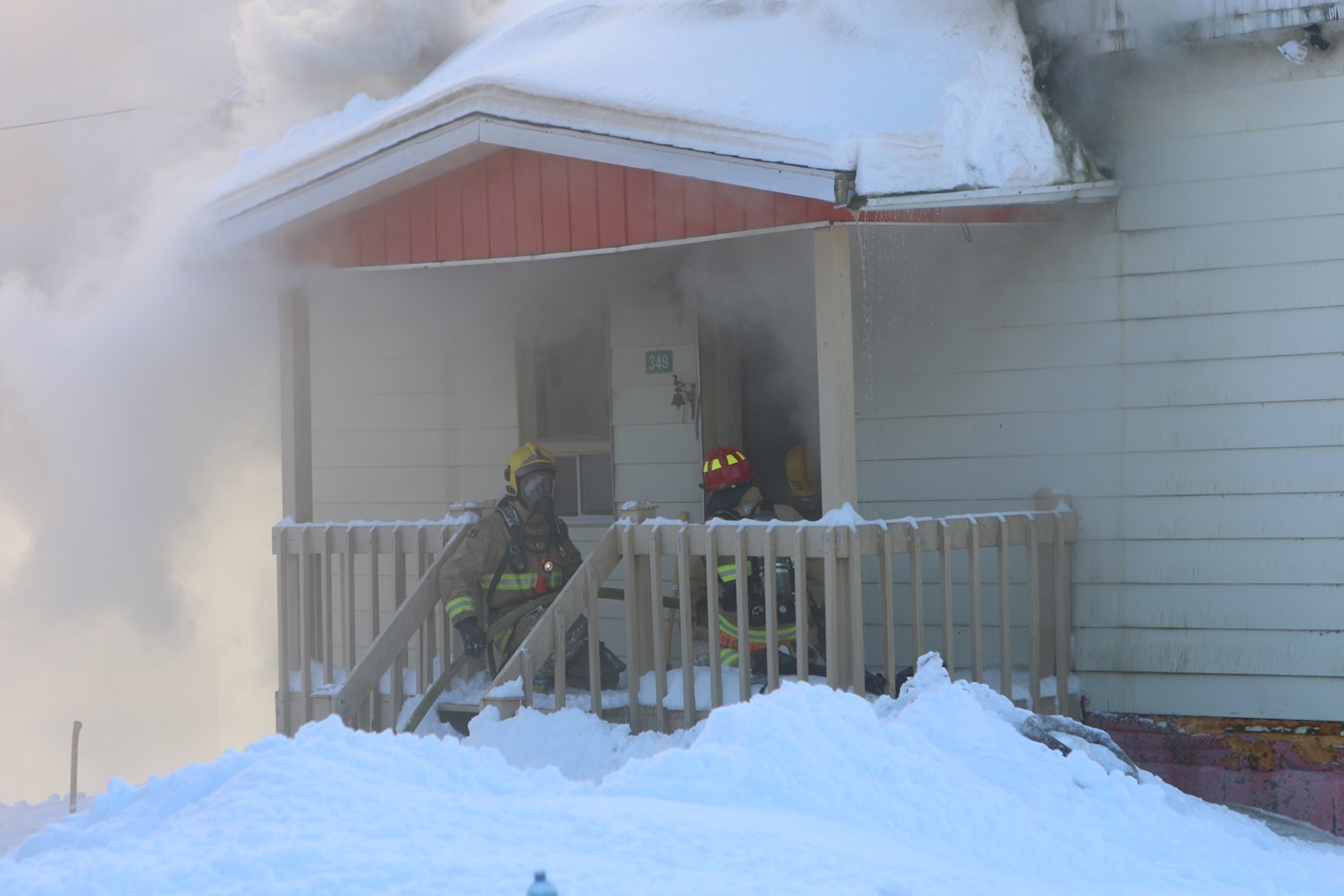 À leur arrivée les premiers pompiers ont confirmé l'incendie dans l'entretoit de la maison avec fumée abondante à l'extérieur du bâtiment.