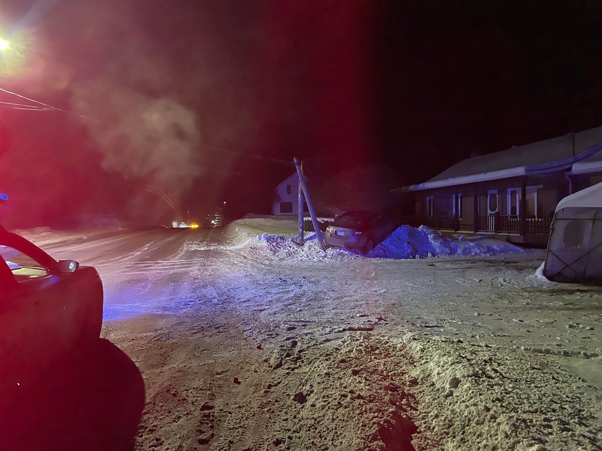Un véhicule a terminé sa course contre un poteau électrique hier soir vers 21 h 50 au 6070 127e rue à Saint-Georges.