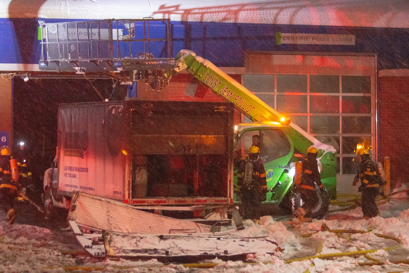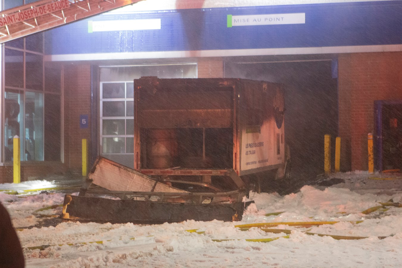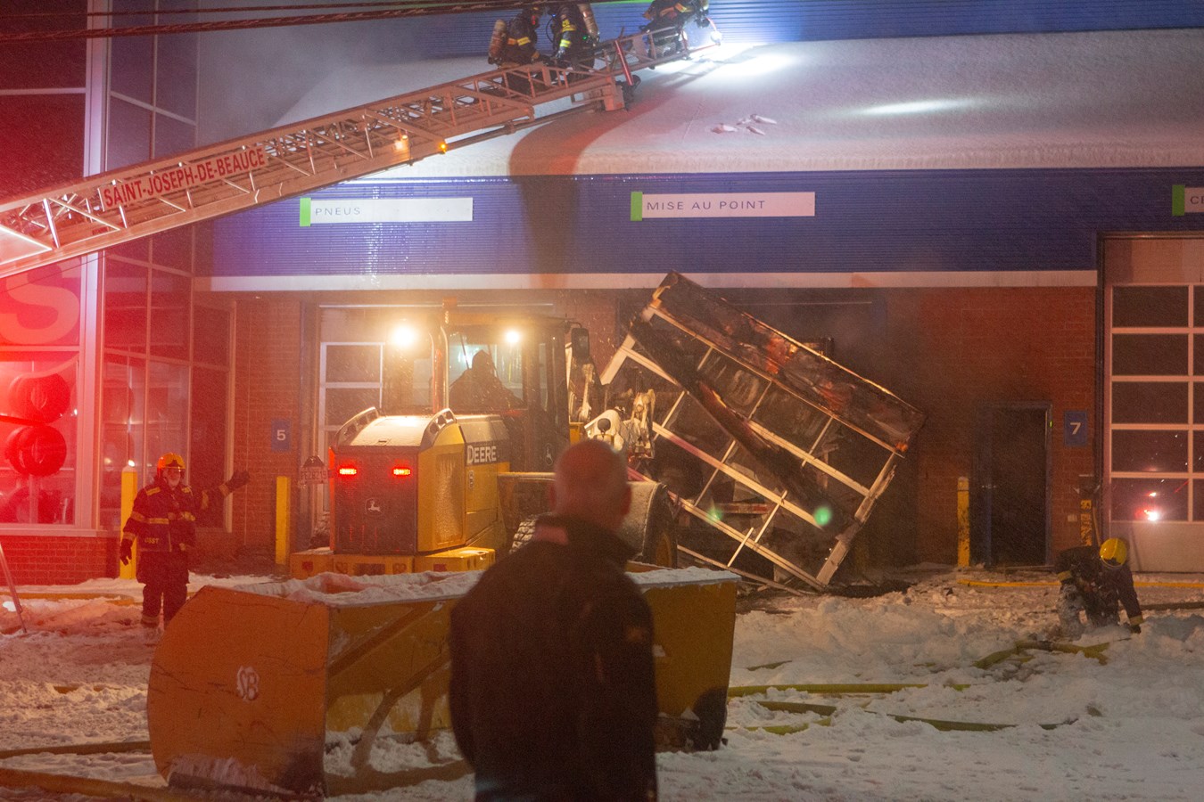 Le SSI de Saint-Joseph-de-Beauce a été demandé en entraide avec le camion échelle ainsi que les pompiers de Saint-Victor et de Saint-Georges. Construction Jean Pouliot a aussi aidé le travail des pompiers grâce à une nacelle.