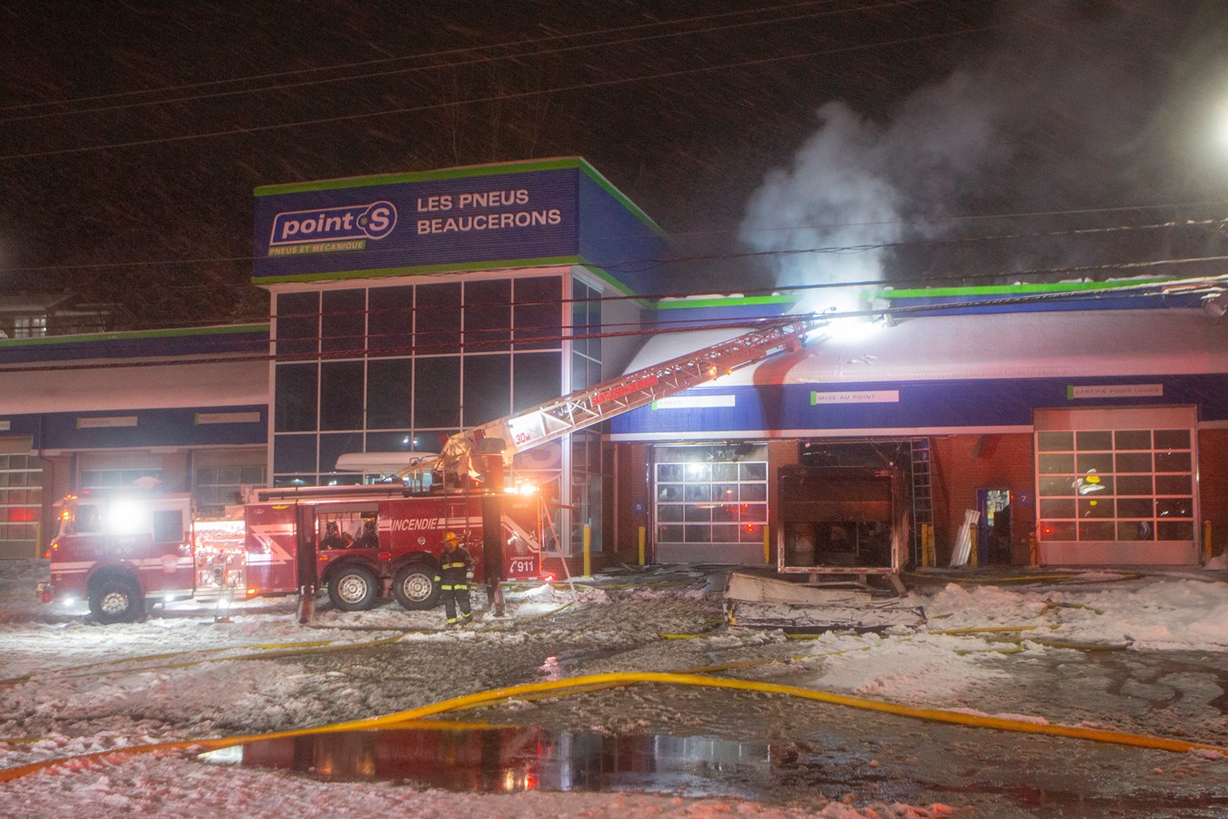 Le service de sécurité incendie (SSI) de Beauceville a été appelé vers 19 h 20 hier soir, pour un feu de commerce chez Pneus Beaucerons au 538 sur le boulevard Renault.