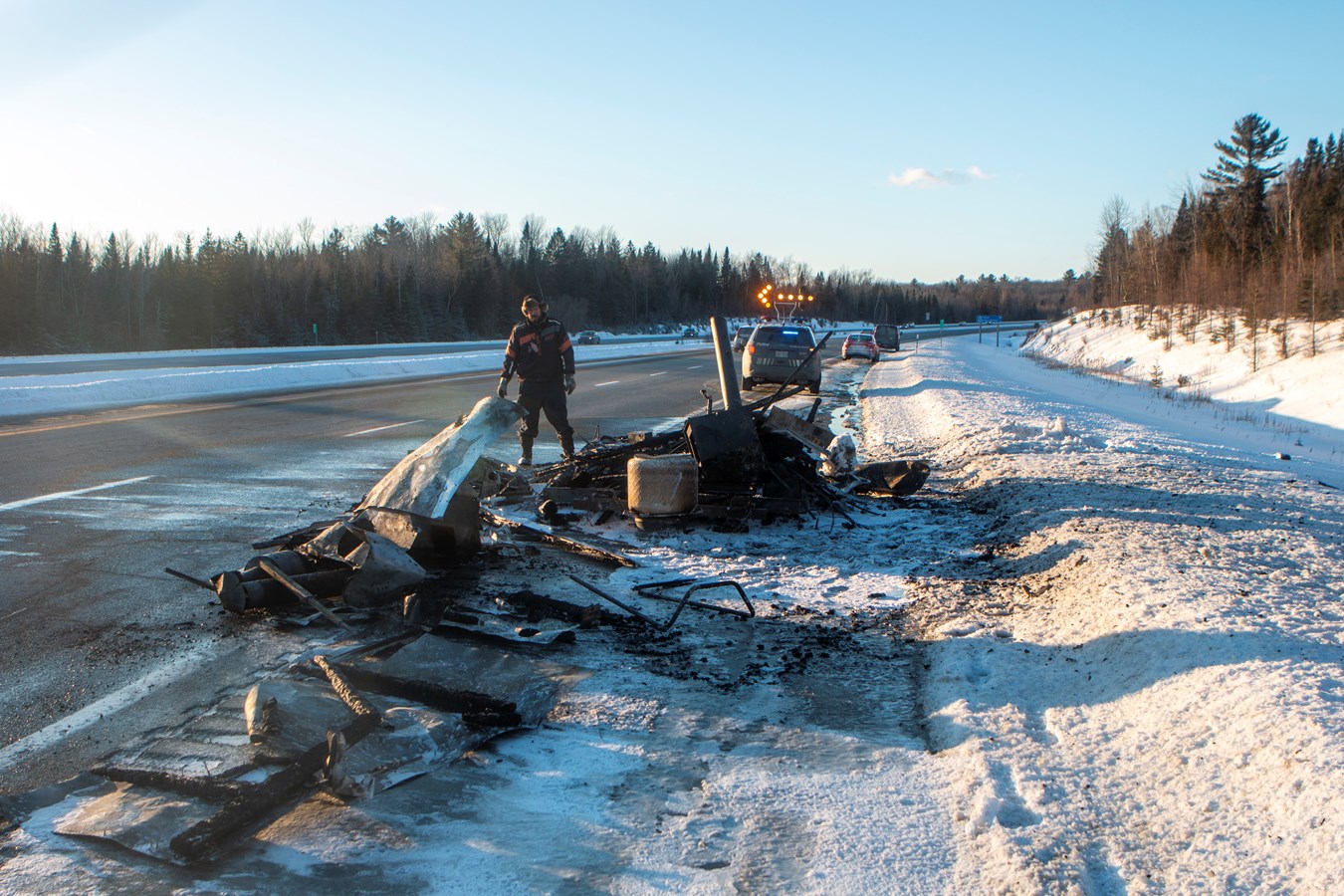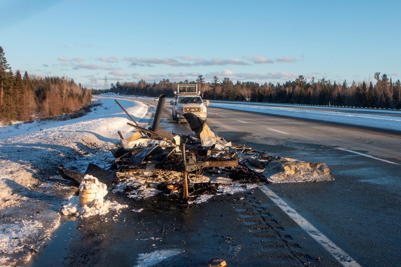Feu de cabane à pêche... sur l'autoroute!