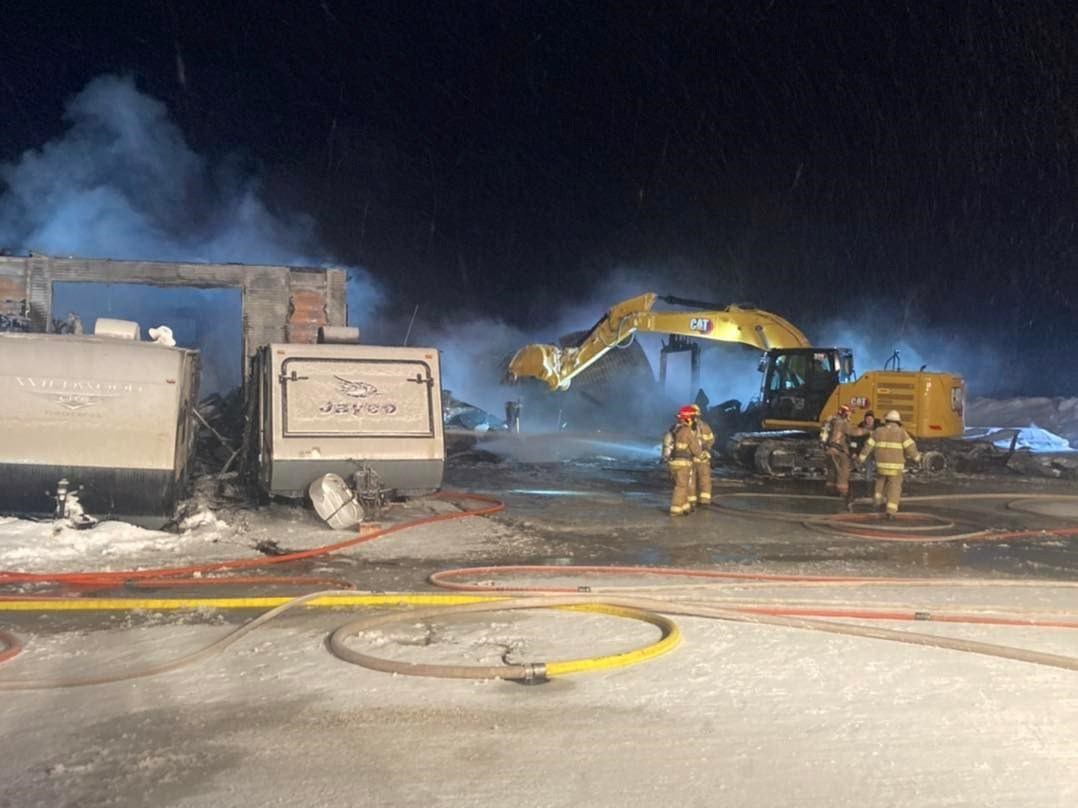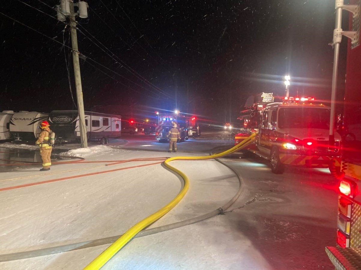 Un important incendie, survenu au cours de la nuit dernière, a ravagé le bâtiment d'une entreprise de réparation de véhicules récréatifs, Roulottes Occasion VR, installée à Saint-Bernard.