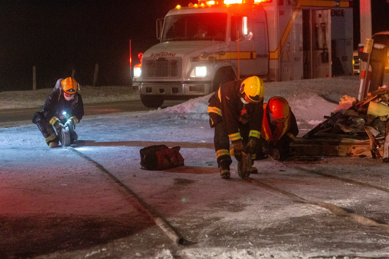 Les pompiers ont été appelés sur les lieux vers 21 h après qu'un passant ait composé le 911 après avoir aperçu le feu. Ce même passant a aussi averti le propriétaire.
