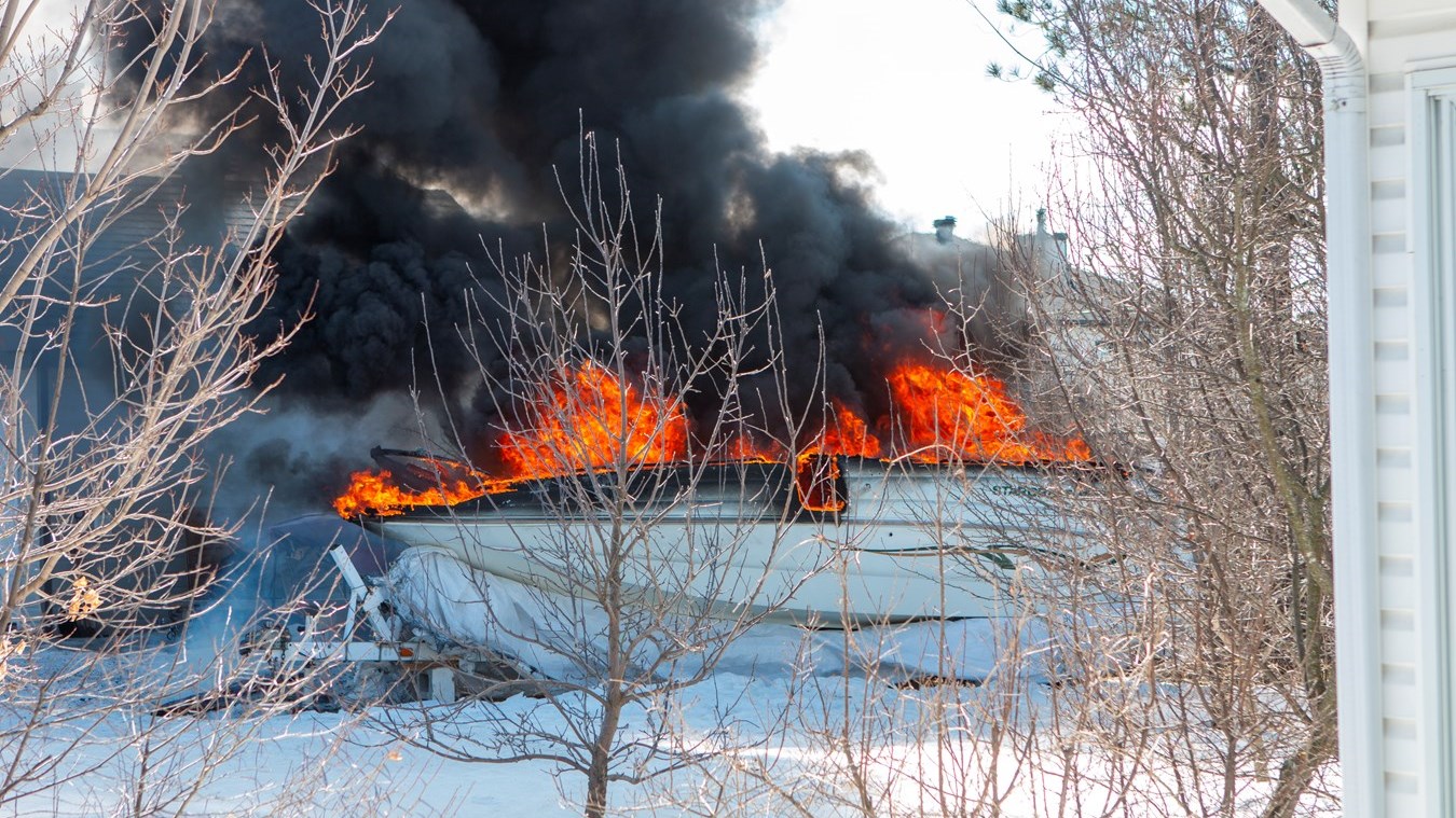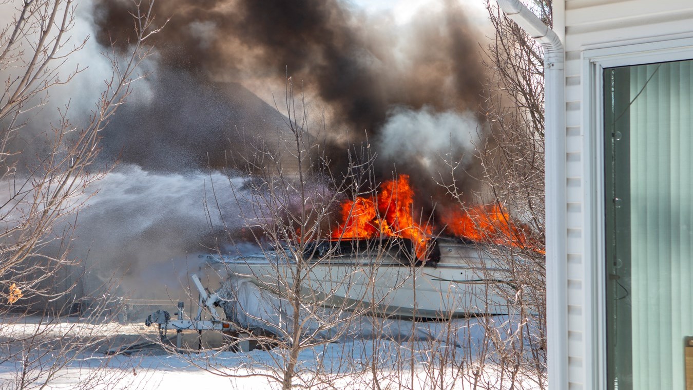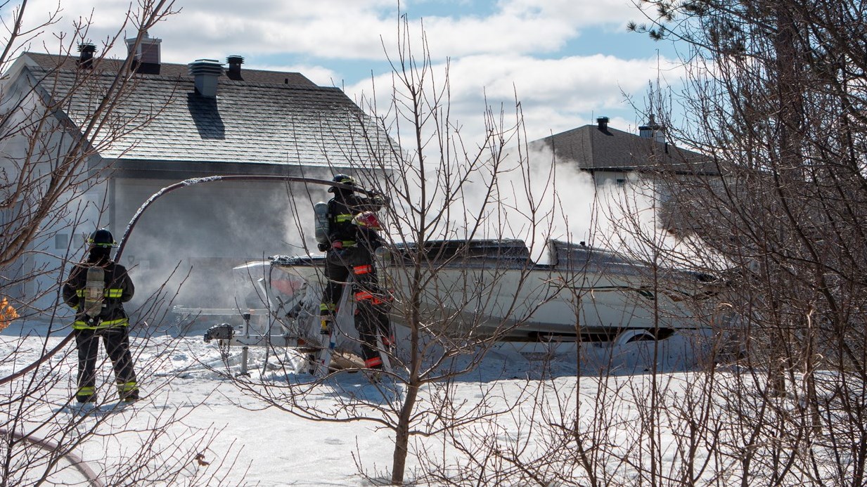 À l'arrivée des pompiers du Service de sécurité incendie (SSI) de Saint-Georges, le feu battait son plein dans l'embarcation de 24 pieds, qui était remisée à cet endroit.