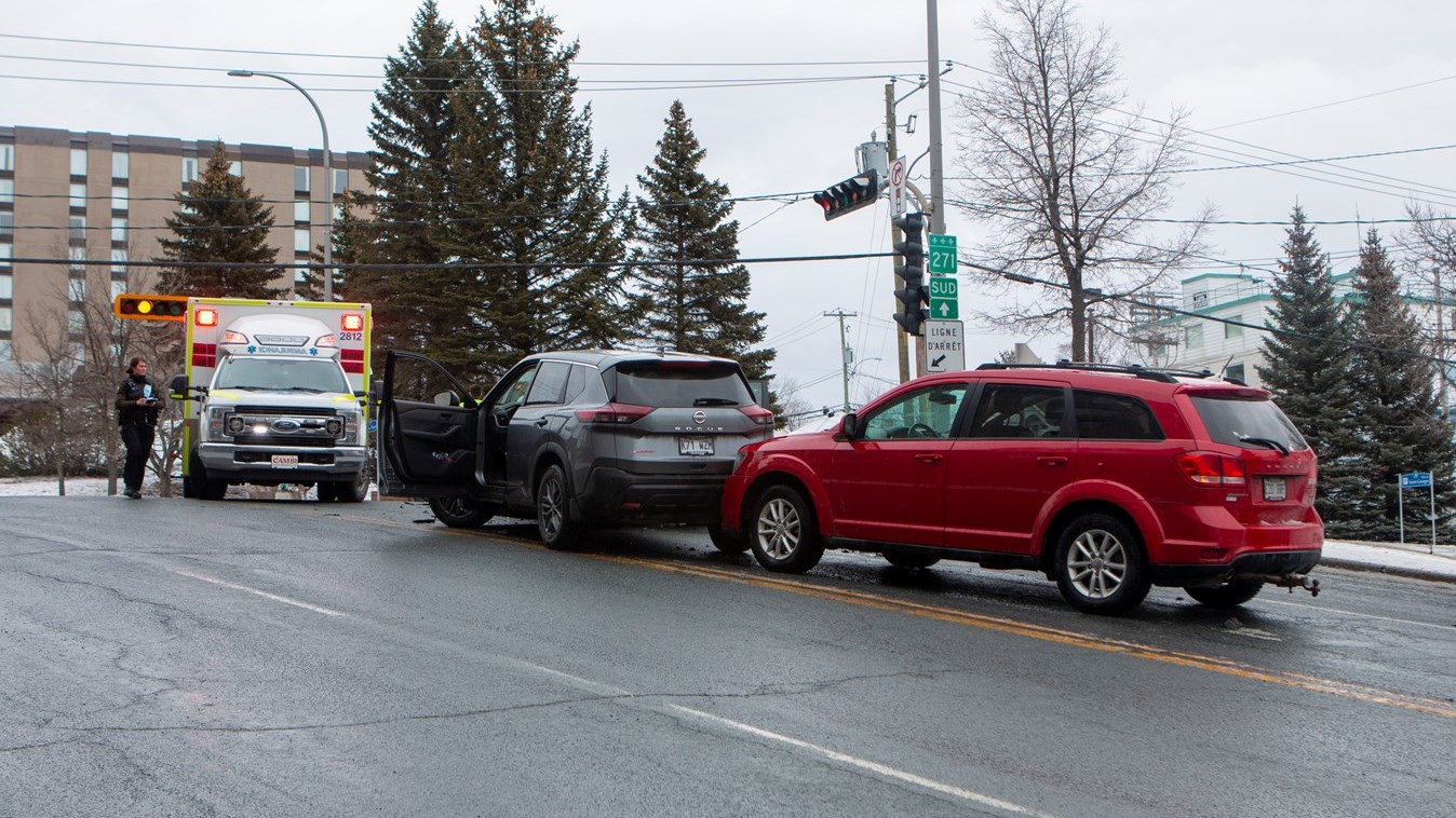 L'accident survenu au croisement de la 2e avenue et de la 118e rue à Saint-Georges, vers 11 h 15 ce matin, a fait deux blessés légers.