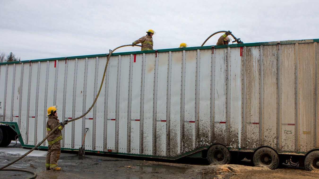 Selon le directeur du SSI, Jean-François Bolduc, les pompiers ont dû vider une partie de la remorque pour procéder à l'extinction du feu.