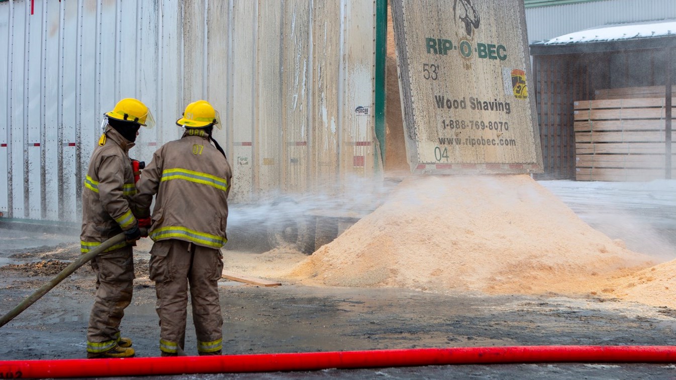 Les pompiers du Service de sécurité incendie (SSI) de Saint-Côme-Linière sont intervenus vers 6 h 30 ce matin chez Produits Forestiers D&G, situé sur la route du Président-Kennedy.