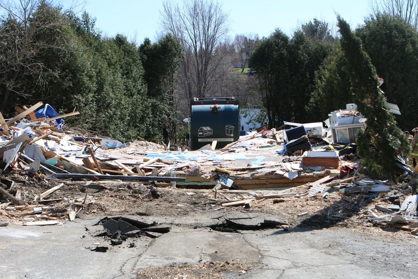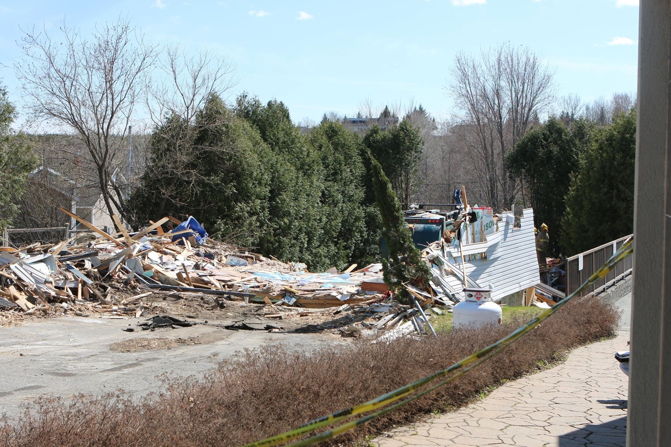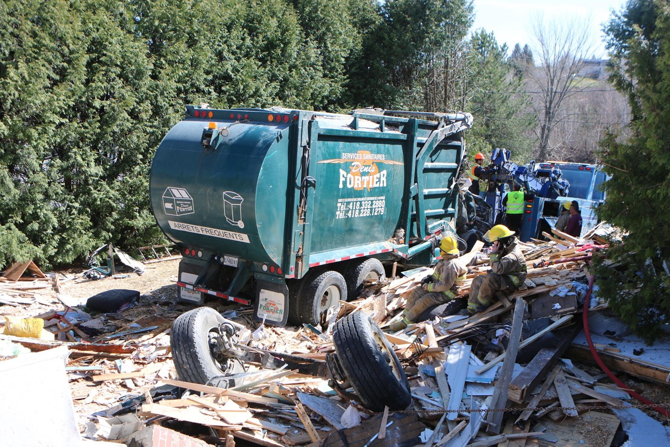Un camion à ordures a détruit une résidence qui se trouvait le long de la rue Principale, face à la 15e Rue, à Saint-Côme-Linière.